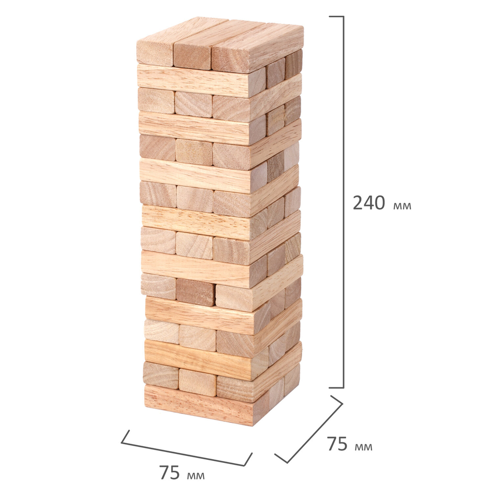 Настольная игра включает в себя 48 деревянных неокрашенных брусков размером 75х25х15 мм. Бруски гладкие и ровные, со скруглёнными углами.