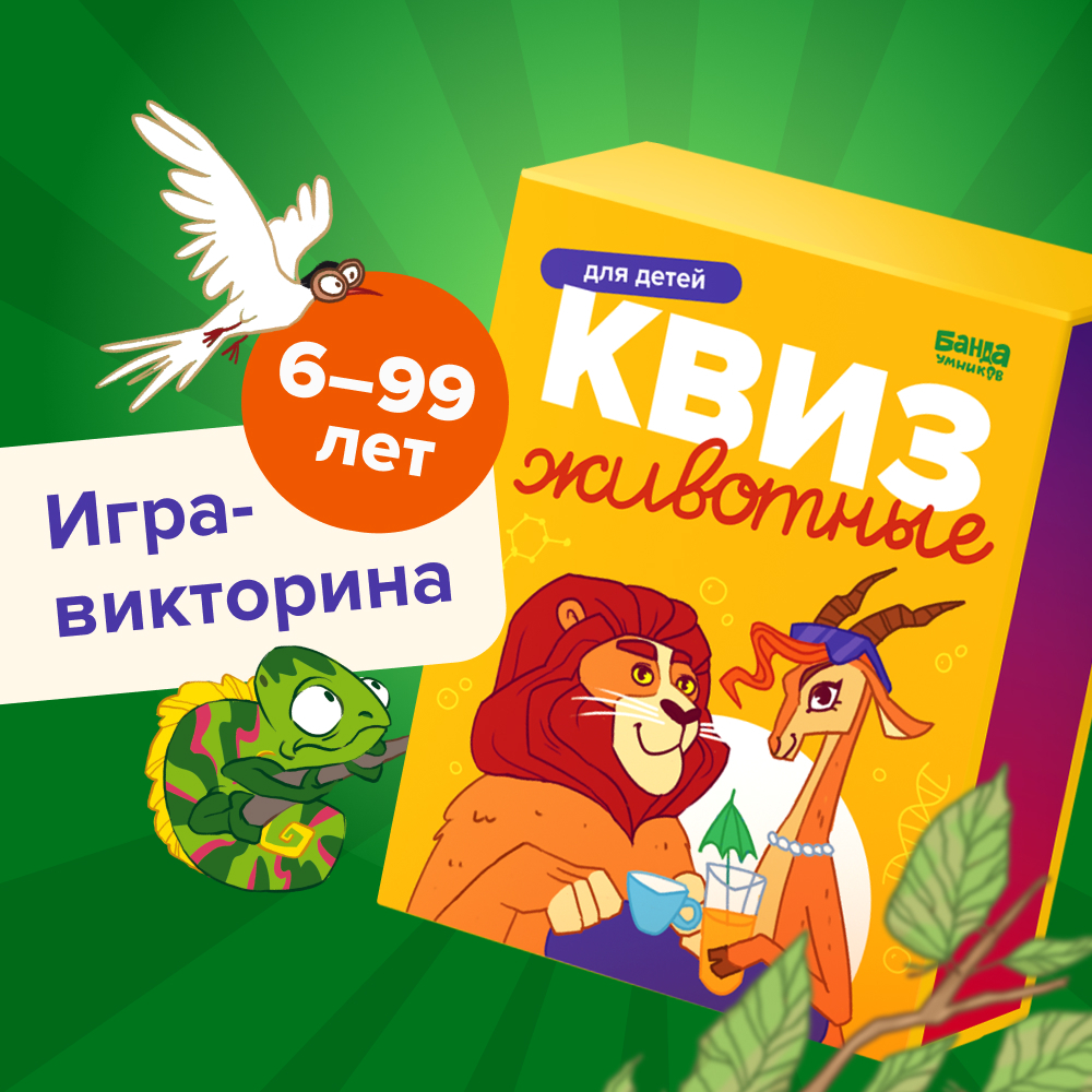 Поучаствовать в научном соперничестве в викторине "Квиз. Животные" могут 1-15 игроков от 6 лет.