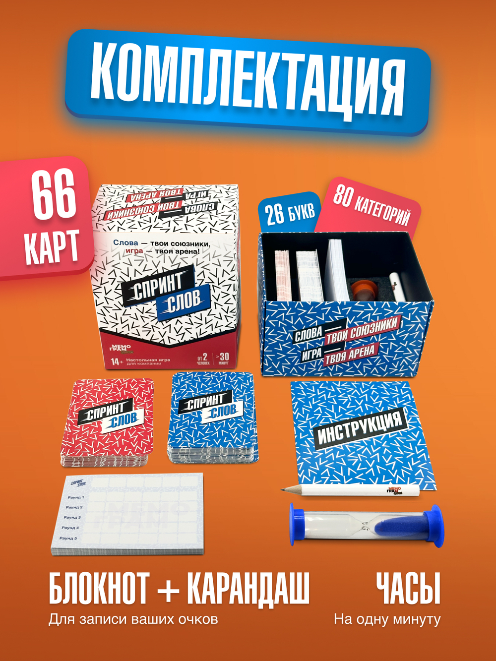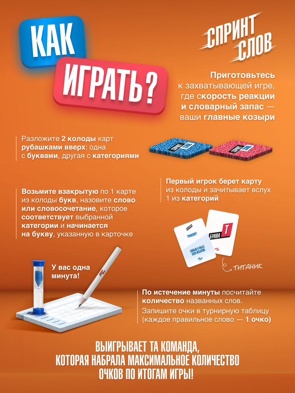 Настольная игра "Спринт слов", где ваша скорость реакции и обширный словарный запас станут ключевыми факторами успеха!