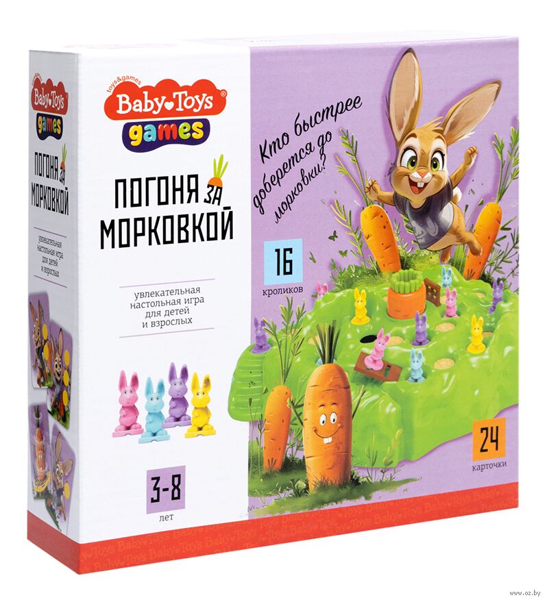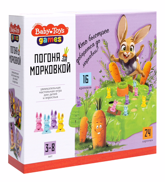 Настольная игра для детей "Погоня за морковкой" – увлекательная игра для 1-3 игроков на скорость реакции.