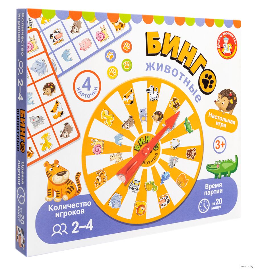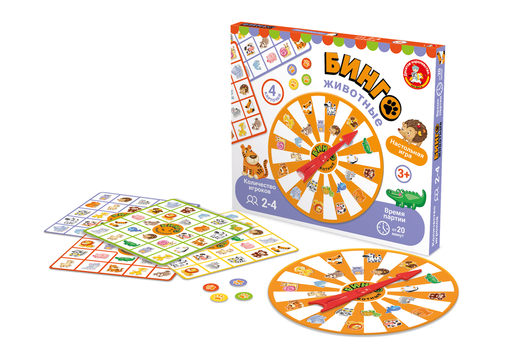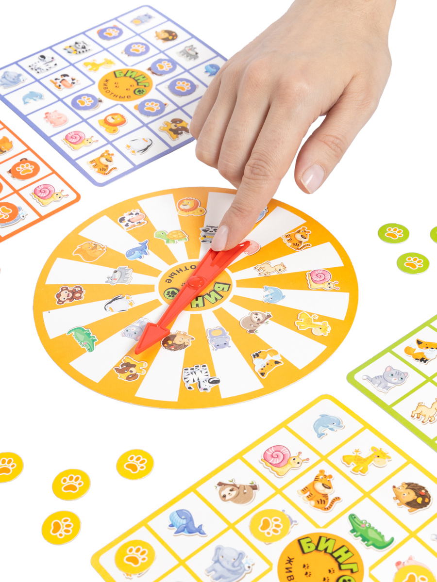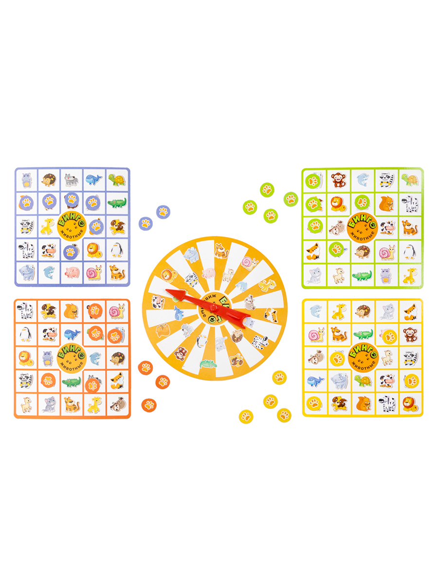 Настольная игра Викторина "Бинго. Животные" – это увлекательная игра для малышей. Она рассчитана на 2-4 игроков. Крути рулетку и заполняй карточку жетонами! Выиграет тот, кто первым заполнит 5 клеток!