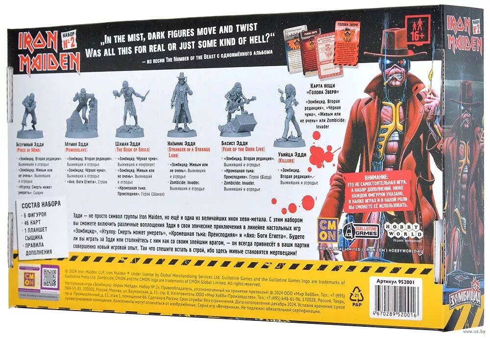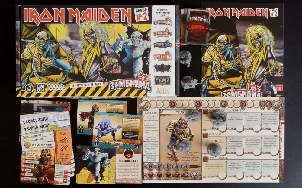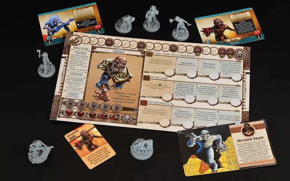 Учёные активно спорят: есть ли в этом мире явление более хеви-металовское, чем Эдди – символ и икона группы Iron Maiden. Пока исследования на эту тему ещё только проводятся, сам Эдди времени не теряет и распространяет своё величие не только по миру музыки, но и по миру настольных игр, путешествуя из одной вселенной в другую в разных своих воплощениях. До сих пор ему покорились следующие линейки игр: "Зомбицид", "Кромешная тьма: Преисподняя", "Анх: Боги Египта", "Восходящее солнце" и даже "Ктулху: Смерть может умереть". И с помощью этих наборов вы сможете встретиться с ним в каждой из них! Но будьте готовы: не всегда он будет являться вам другом – всегда есть вероятность, что вы окажетесь по разные стороны баррикад. Впрочем, это зависит только от вас...
