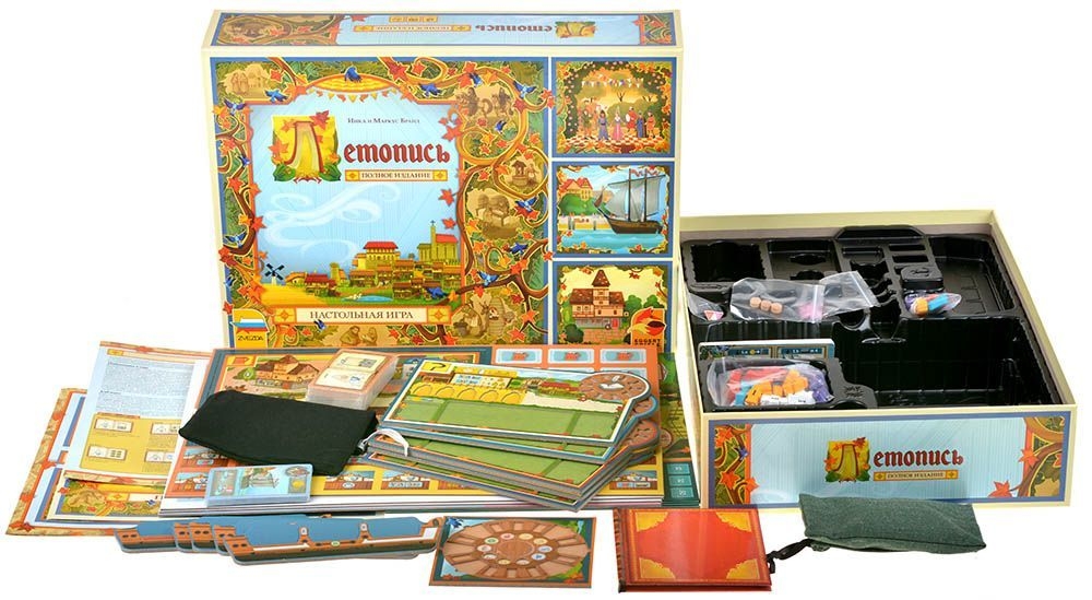 В коробку полного издания включены все уже ранее вышедшие промоматериалы, дополнения ("Таверна", "Порт"), а также новое дополнение "Свадьба".