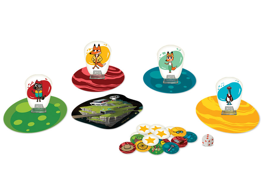 Цель в этой игре-гонке – заработать как можно больше победных очков, отвозя жетоны на планеты. Бросая кубик и определяя количество действий на ход, игроки будут набирать себе жетоны предметов и, перемещаясь между планетами и астероидом, доставлять их владельцам.
