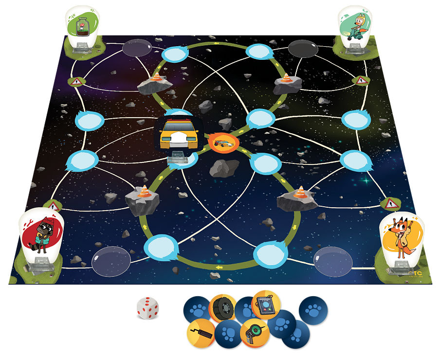 Ловите машину! Перемещая фишки по полю, игрокам предстоит собрать и доставить в машину 3 жетона деталей. Кто сделает это быстрее всех, тот и победит в игре.