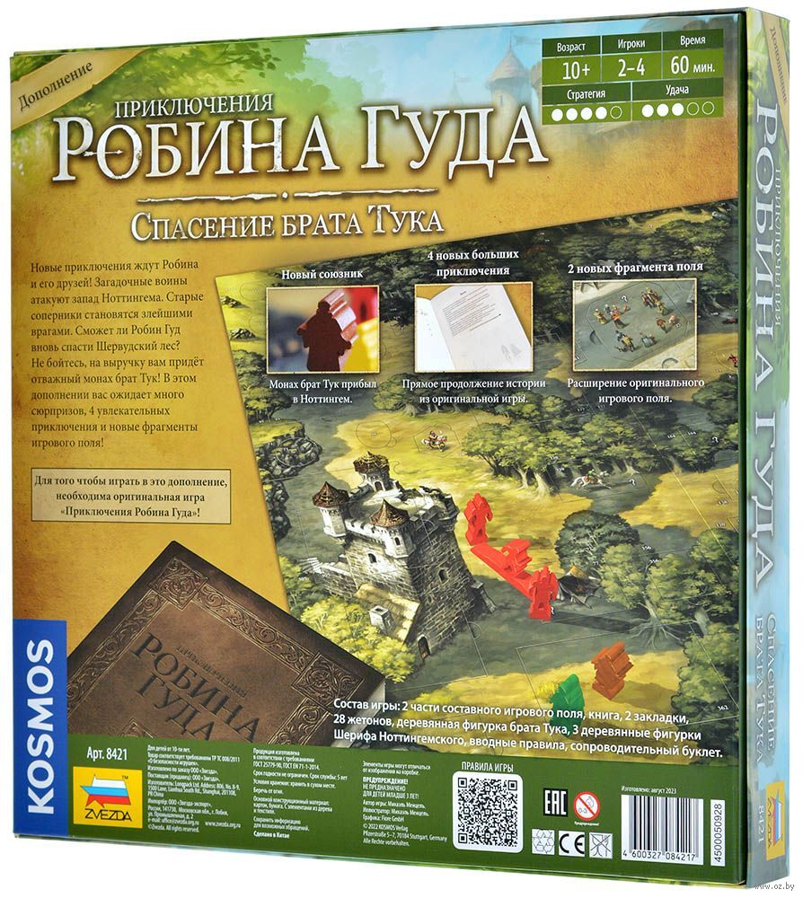 Дополнение "Спасение брата Тука" глубже раскроет мир и законы Шервудского леса. В наборе игры вы найдёте "Книгу приключений" с новыми захватывающими историями, которые придают игре дополнительную глубину и атмосферу.