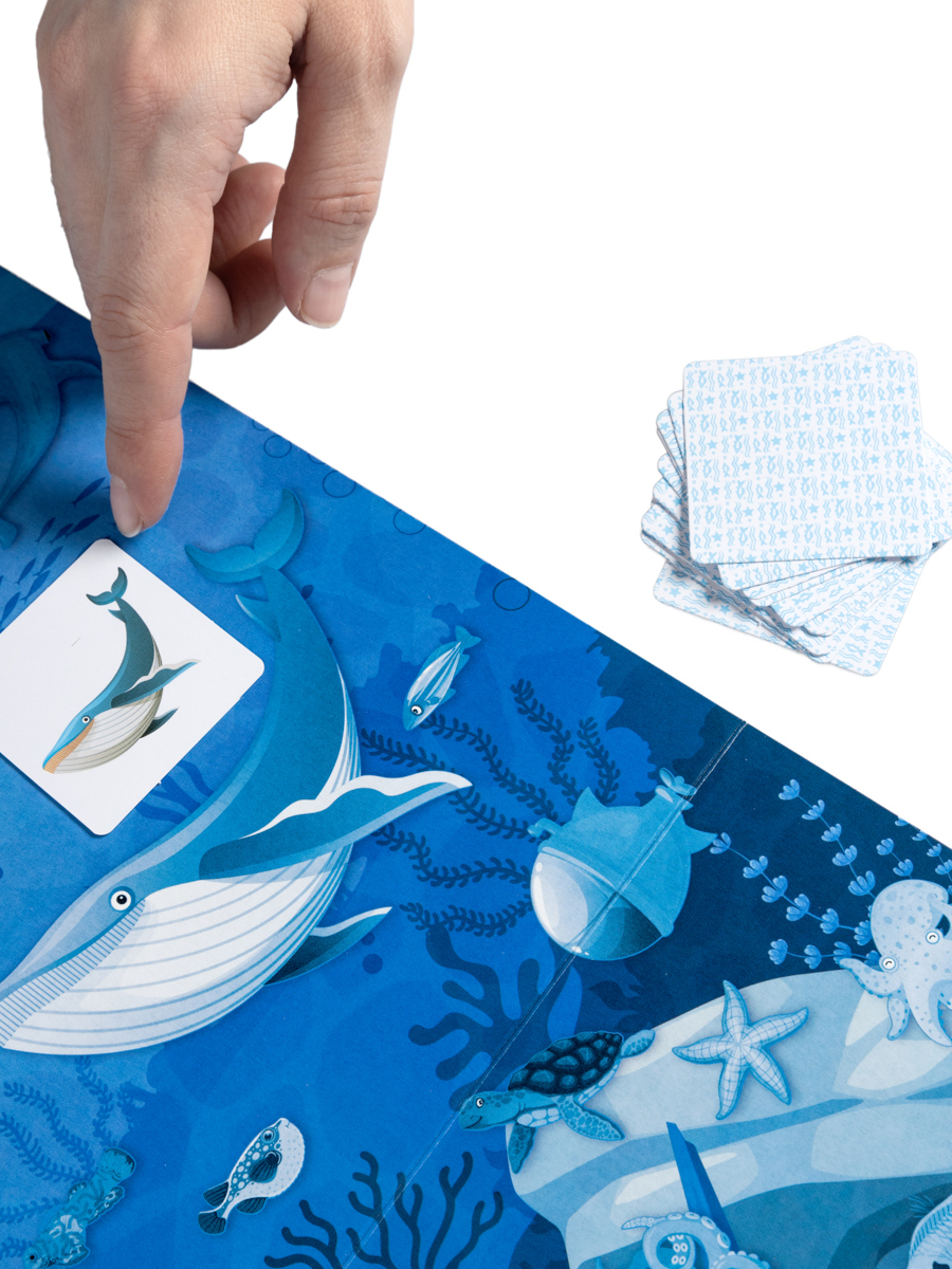 Цель настольной игры-квеста "Тайны морских глубин" – быстрее всех найти на игровом поле подводных обитателей и затонувшие предметы.