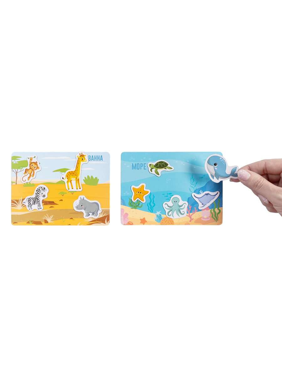 Магнитная игра "Фрукты и овощи" Baby Toys – это развивающая игра для малышей, с которой они узнают о местах обитания разных животных.