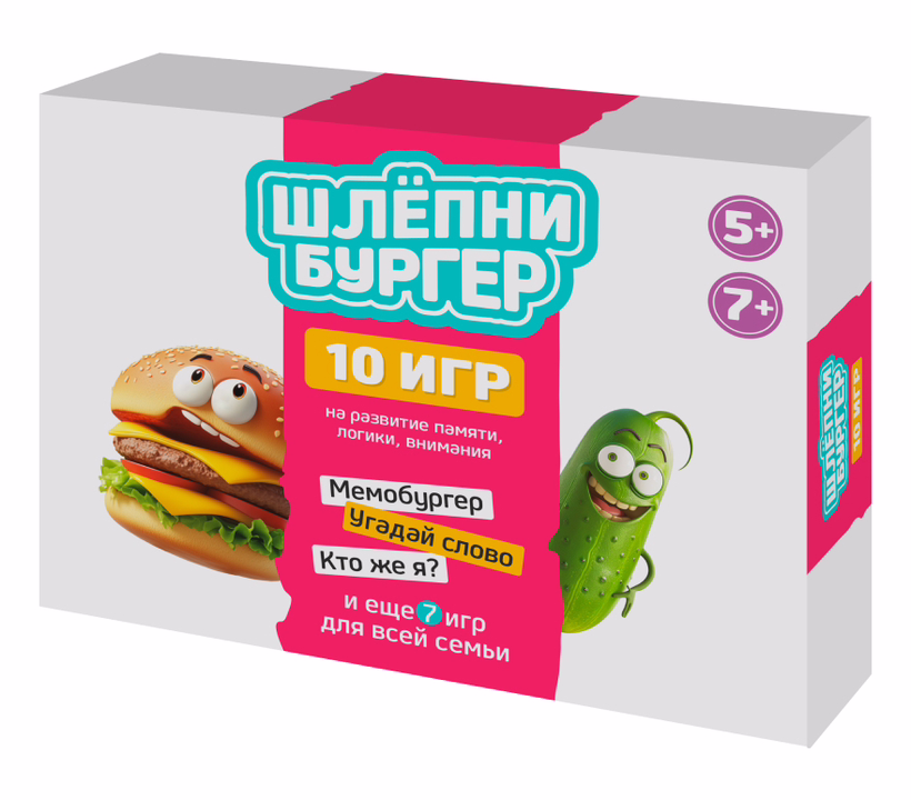 Причём тут бургер, спросите вы. А дело в том, что внутри коробки вас ждёт целый бутерброд из 10 увлекательных игр (и да, не все из них посвящены бургерам). Они подарят вам и вашем близким много радостных моментов, а заодно потренируют память, логическое мышление и навыки командной работы. Все игры из набора простые и быстрые – отличный вариант для больших вечеринок, детских праздников, встреч с друзьями или семейных посиделок.