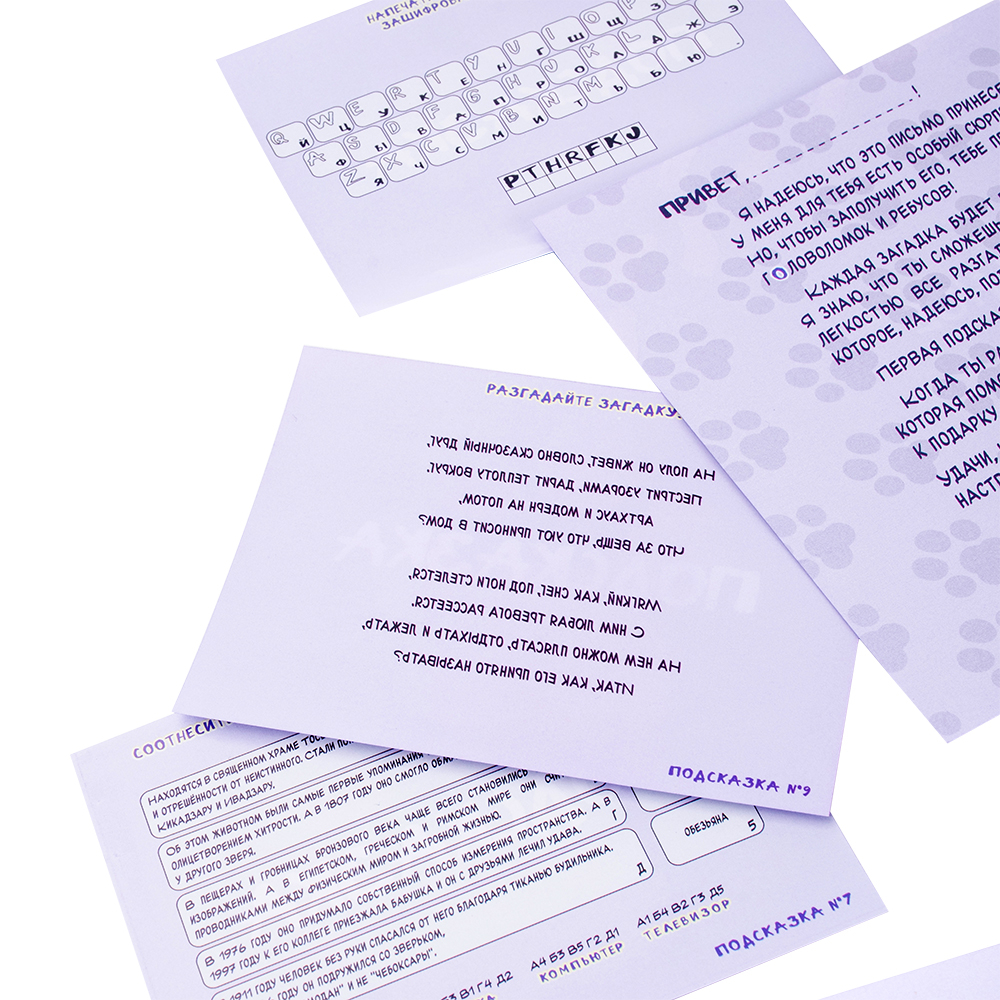 Срочно новую партию!!! Это отличная находка, круто оформленная! Интересные загадки, всем советую, кто ищет квест на день рождения! Взрослому парню было интересно!
