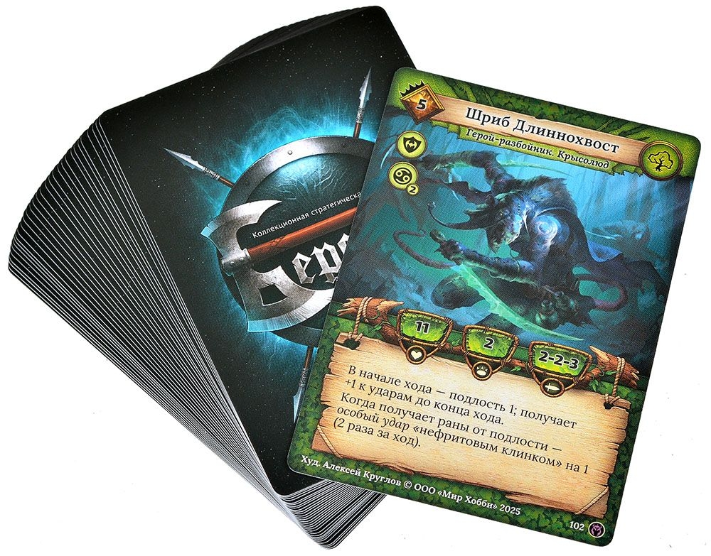 В стартовые наборы входят готовые отряды, с которыми вы быстро освоите игру и сможете сражаться с отрядами других игроков, а также бустер с новыми картами.