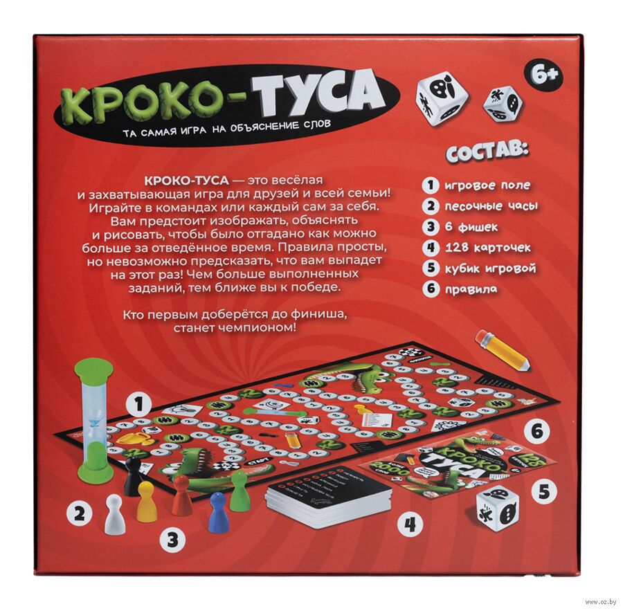 Настольная игра для детей "Кроко-ТУСА" – это увлекательная игра для детей и взрослых, в которой нужно показывать пантомимой, объяснять словами или нарисовать то, что выпадает на карточке за отведенное время и отгадывать слова.