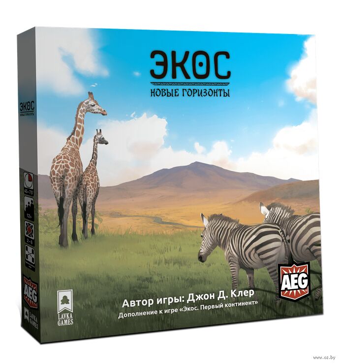 В дополнении "Экос. Новые горизонты" вводится новая механика розыгрыша карт особых участков местности, каждый из которых по-своему взаимодействует с ландшафтом континента и влияет на действия игроков. Как изменятся ваши планы, если на континенте появится иссушающая Сахара или непроходимые джунгли бассейна реки Конго?