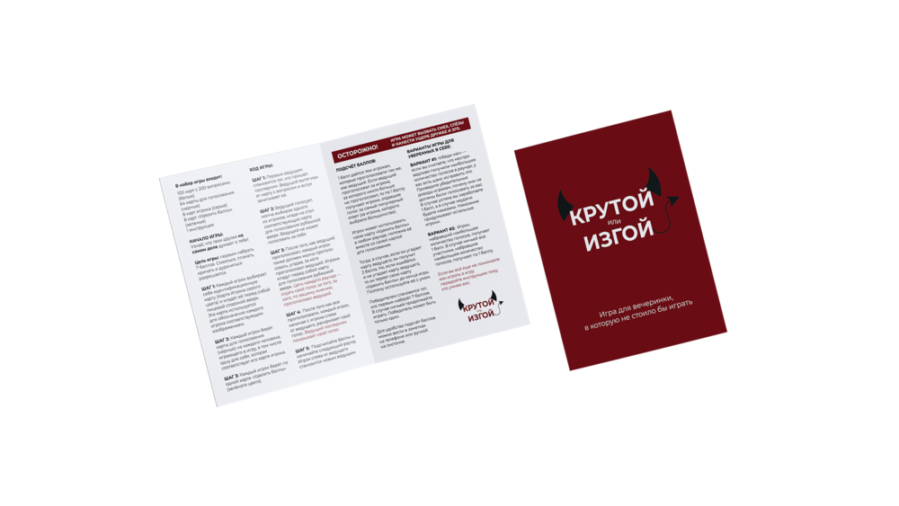 "Крутой или изгой" – это не просто игра, а возможность весело провести время, узнать друг друга с новой стороны и создать незабываемые моменты. Закажите игру и устройте яркий вечер в кругу близких!