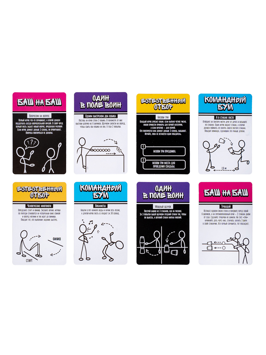 Готовы к безумным челленджам с настольной игрой "Весёлый замес"!? Ни одна вечеринка без нее теперь не обойдется. Простые правила, интересные задания, заставят вас проявить смекалку и ловкость. Соберите друзей, тяните карточки и соревнуйтесь за титул короля вечера! Это развлечение, наполнит смехом любой вечер.