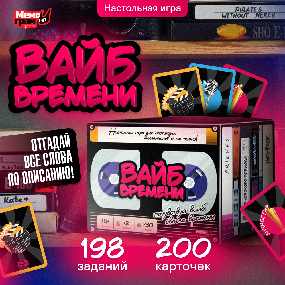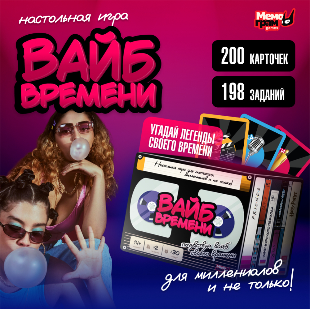 Настольная игра "Вайб времени" – игра для настоящих миллениалов и не только! Нет места для долгих размышлений – говори четко и ясно, чтобы команда поняла тебя с первого раза.