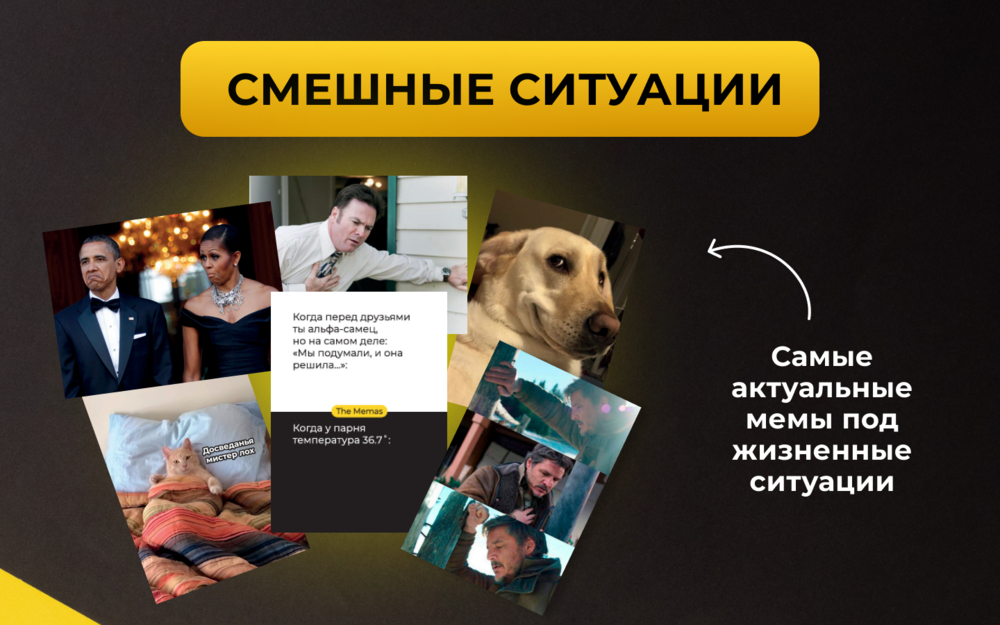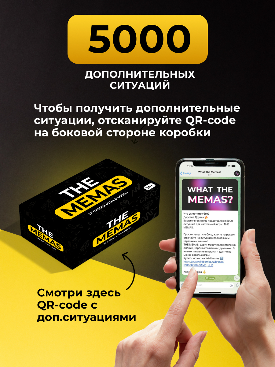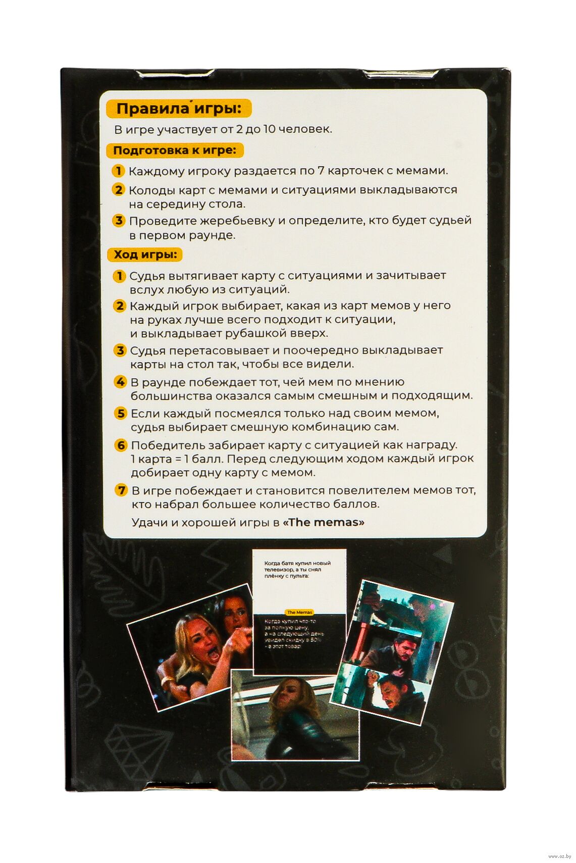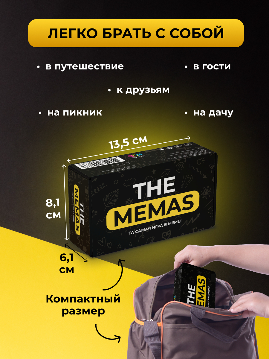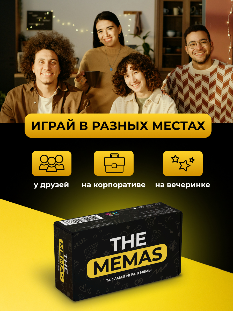 "The Memas – карточная игра в мемы, созданная для весёлой компании и заразительного смеха. Всеми известная мем-игра с обновленными веселыми ситуациями, свежими мемами и, конечно же, классической мемной базой.
