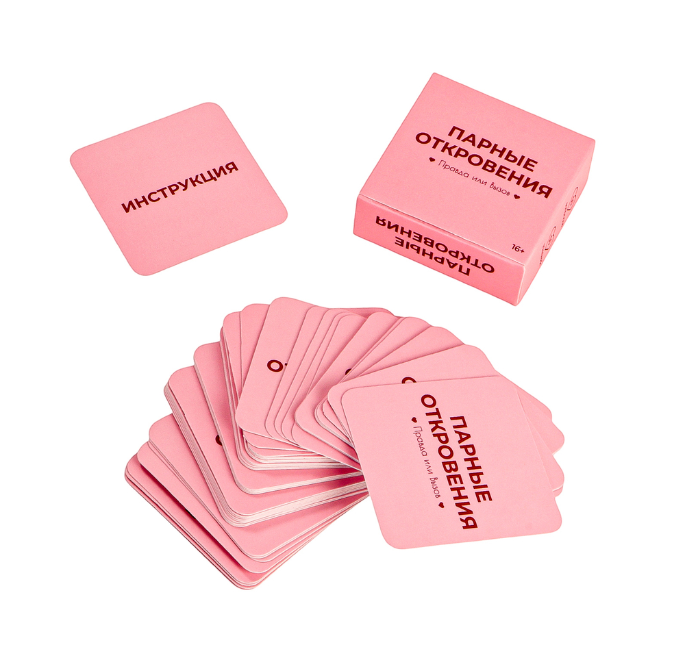 Внутри коробки – 50 карточек с откровенными вопросами и интересными заданиями. Правила просты: по очереди тяните карту и решайте – сказать правду или выполнить задание.