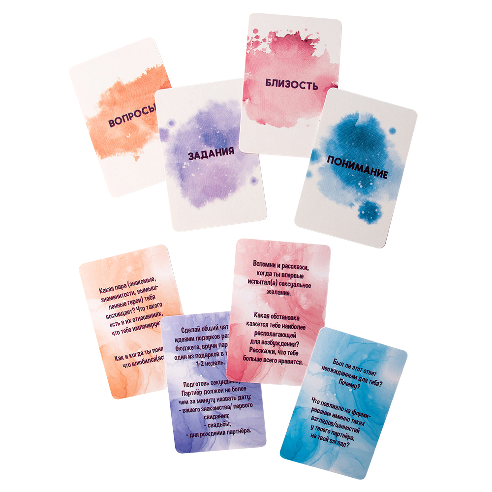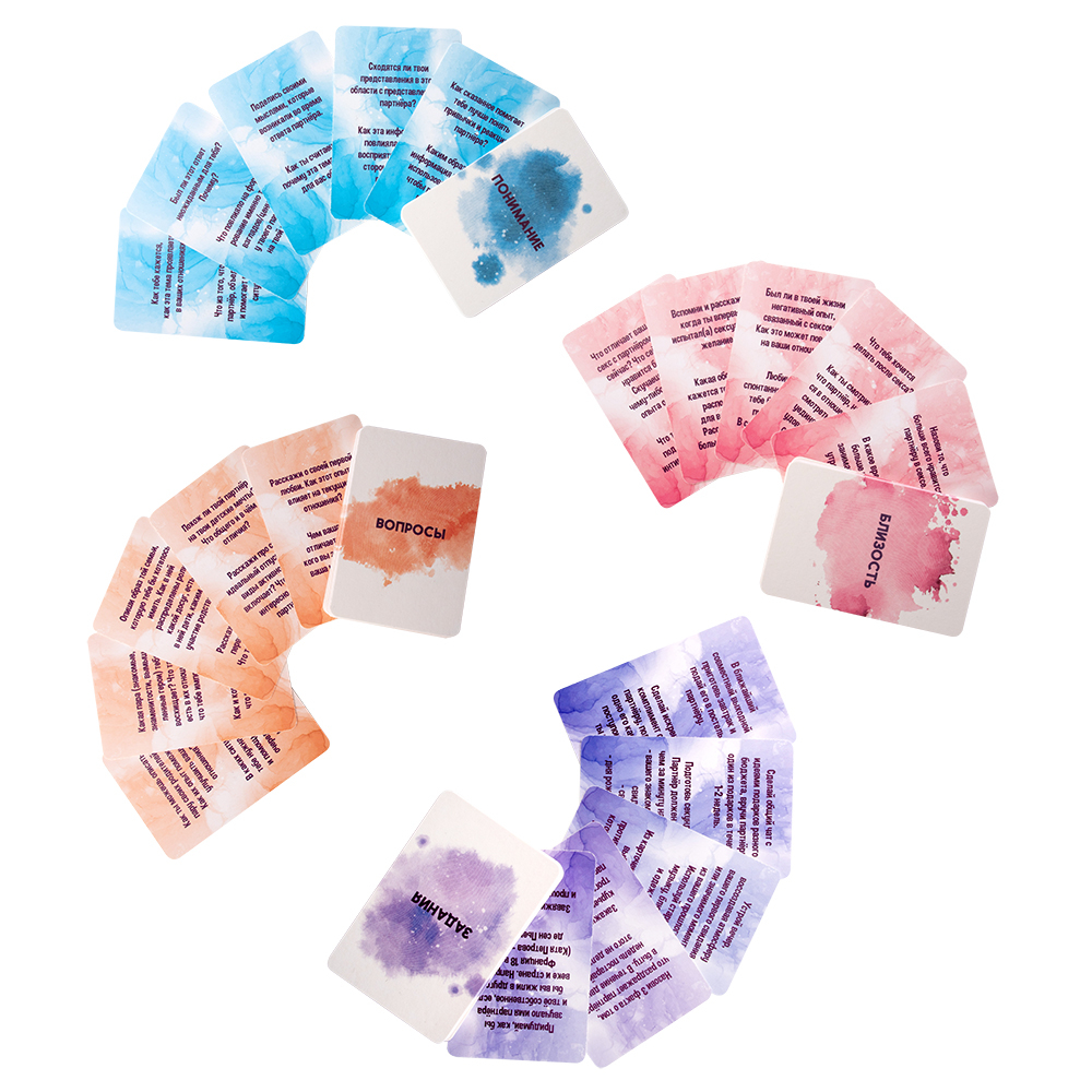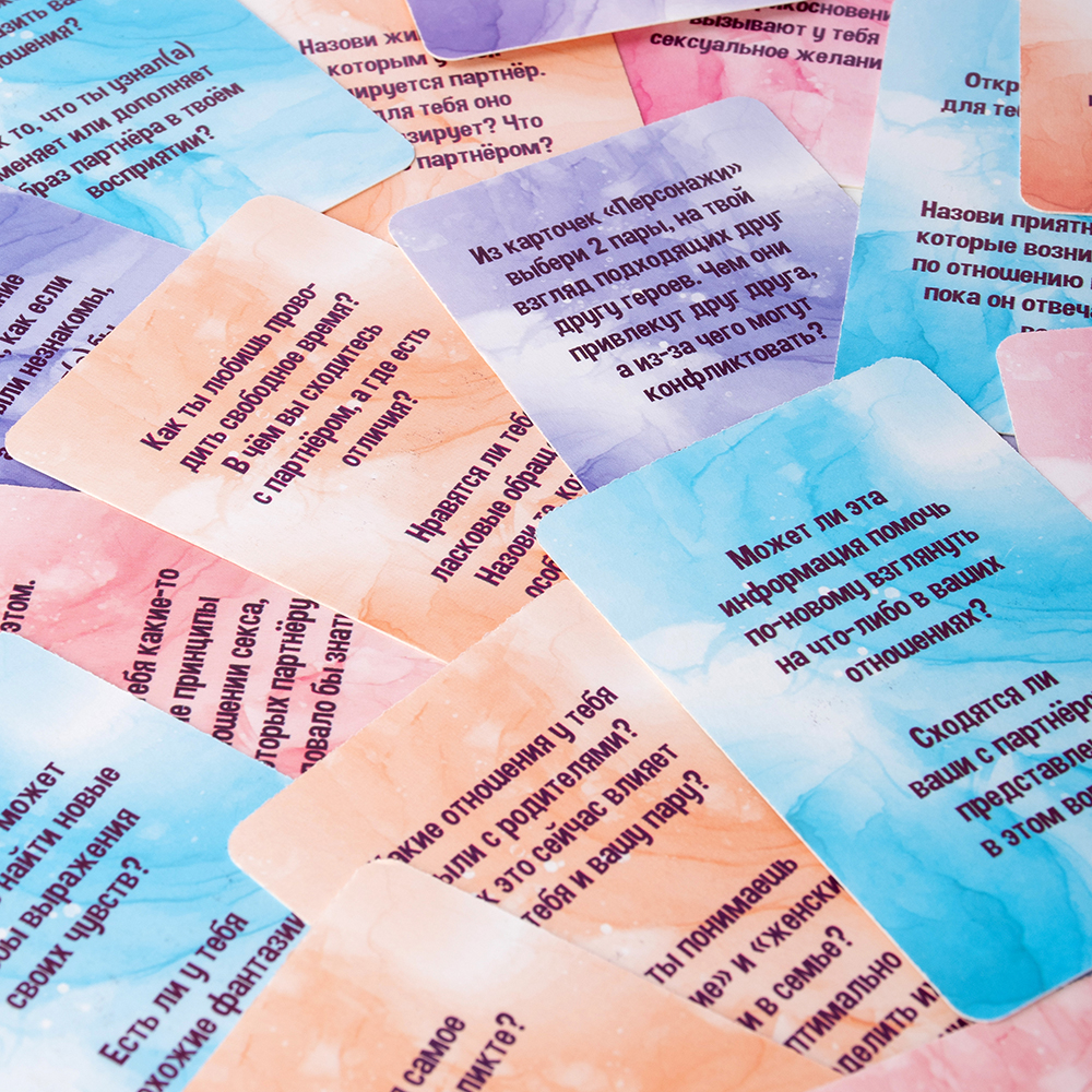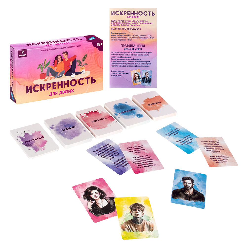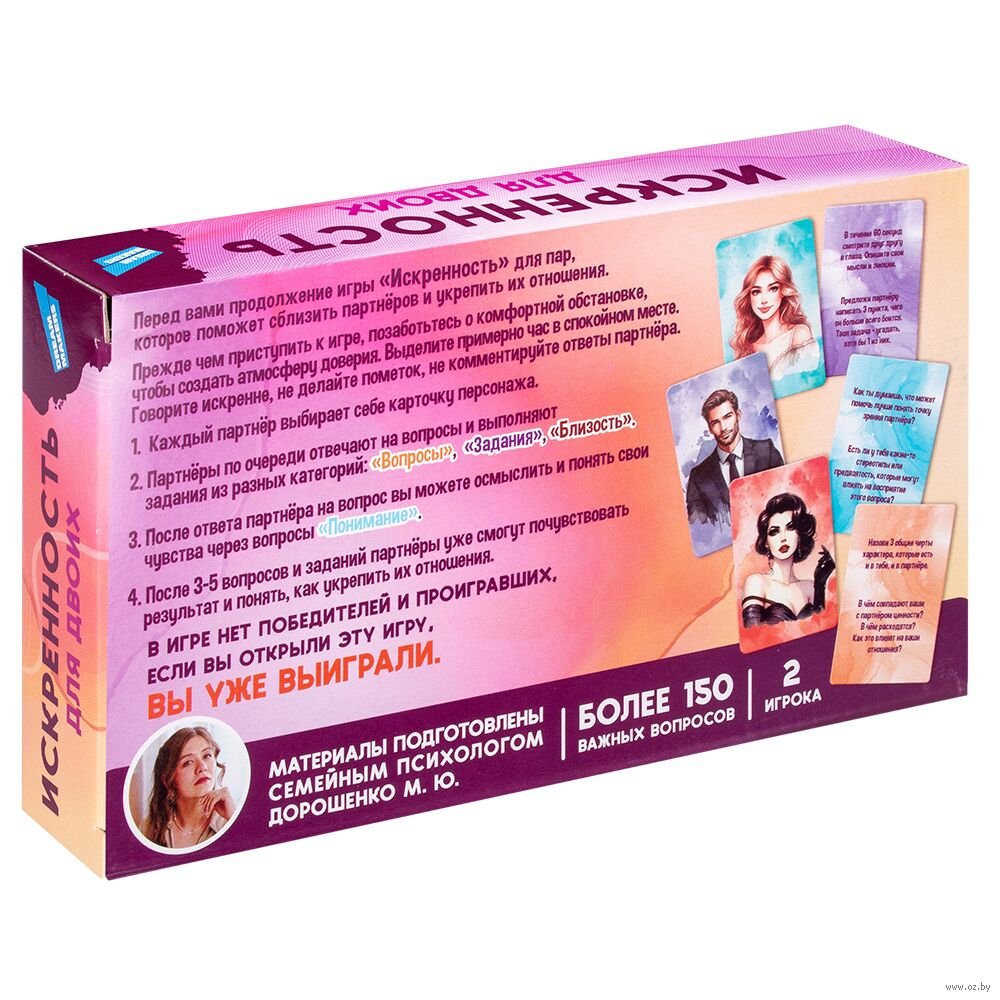 Определённо, лучшая игра из серии Искренность. Судя по вопросам, рассчитана на пары, которые уже давно вместе, но и те, кто только начинают отношения смогут провести время за игрой с пользой.