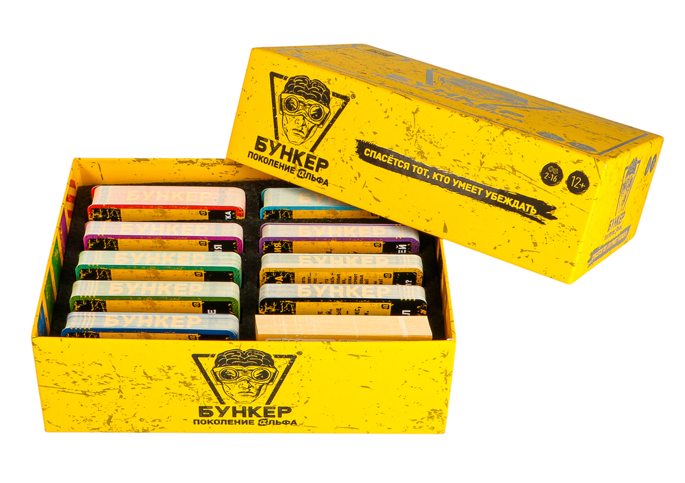 Знакомые полюбившиеся механики "Бункера" не изменились: получив случайные карты, игрок убеждает всех в своей незаменимости и устраняет конкурентов. Новизна в содержании! "Бункер. Поколение Альфа" готов порадовать свежим контентом. Фирменный юмор, непредсказуемость и вариативность поддержат три новые колоды карт: "Фобии" (все-все настоящие!), "Характер" (а не суетолог ли ты, дружок?) и "Суперсила" (детская мечта о суперспособностях).