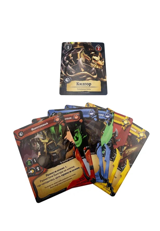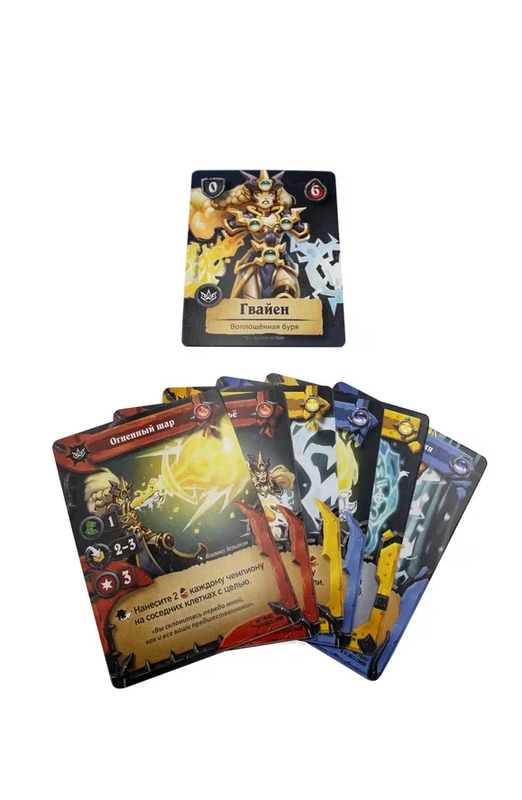 Игроки отправляются на боевую арену. В сражении примет участие 6 уникальных героев (по три на каждого игрока). Герои представлены высоко детализированной миниатюрой и инициальными колодами из шести карт разных цветов. Выбрав своих трёх героев, игроки замешивают их карты в одну колоду. Теперь каждый ход можно будет вытянуть пять карт и разыграть максимум три из них.