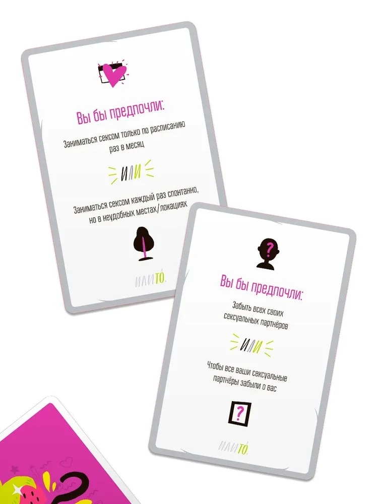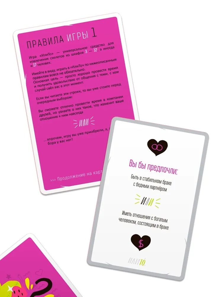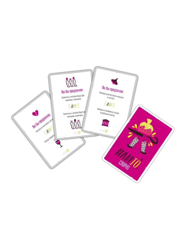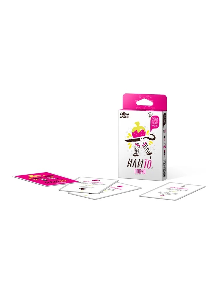 "ИлиТо Спорно" – это настольная игра-дебаты для компании от трёх человек, где каждый раунд игроки тянут провокационную карточку с парой невероятных ситуаций.