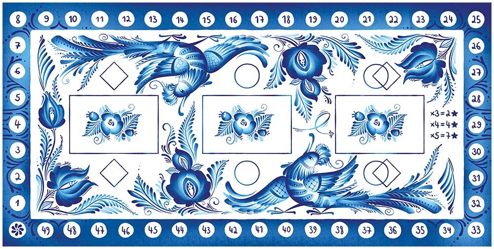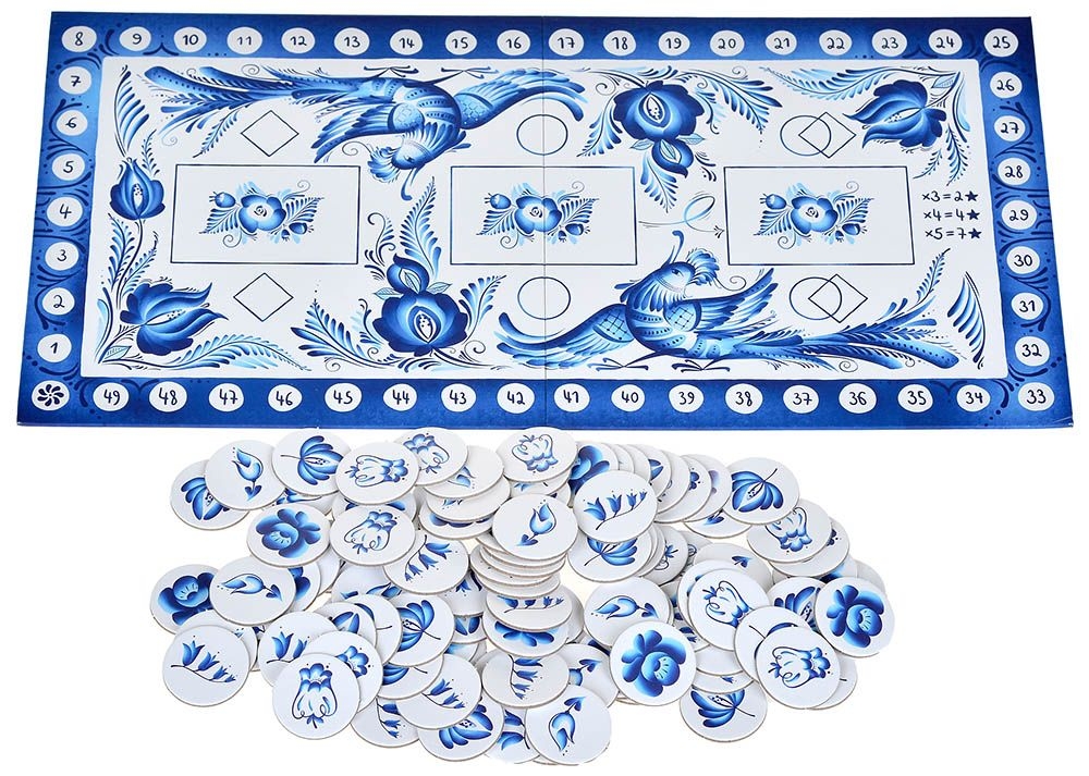 Попробуйте себя в роли мастеров гжельской росписи. Комбинируйте жетоны цветов с изящными орнаментами и составляйте из них уникальные узоры для фарфоровых статуэток.