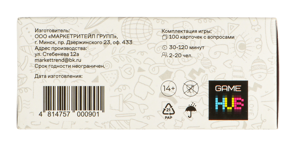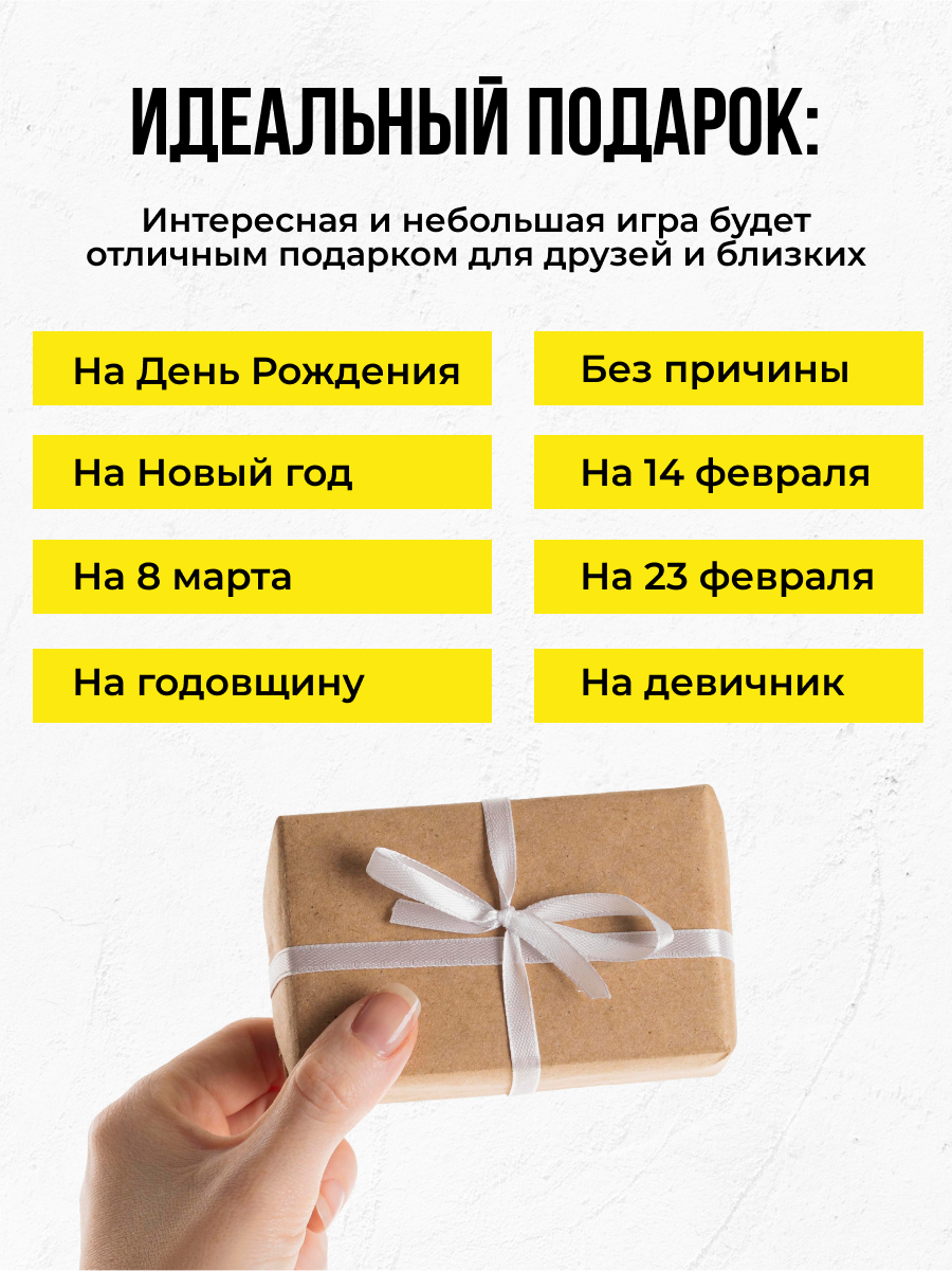 В коробке 100 карточек с неожиданными, забавными и иногда провокационными вопросами. На каждый вопрос даются необычные варианты ответа, игрок выбирает и аргументирует выбор. Вас ждет большое количество разнообразных тем для обсуждения.