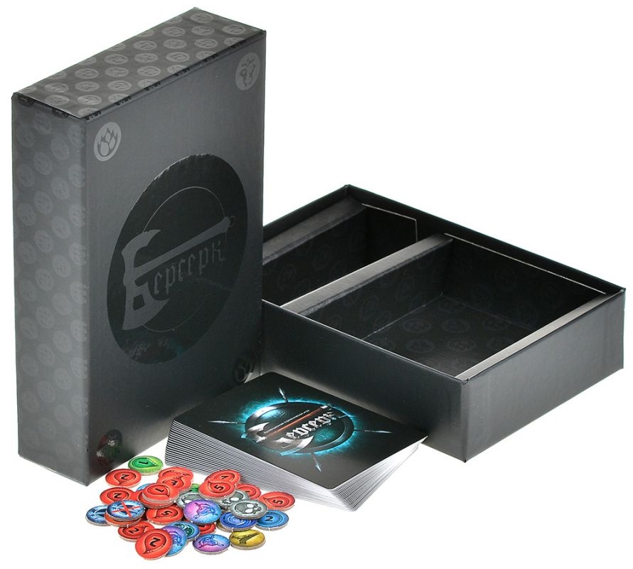 В составе набора – 23 карты из выпусков "Семена раздора" и "Ложные боги" со своими ретро-иллюстрациями, фишки и карточка, на которой находится информация об использовании карт набора на турнирах. Часть карт, как и сам набор, – с возрастным ограничением 18+.