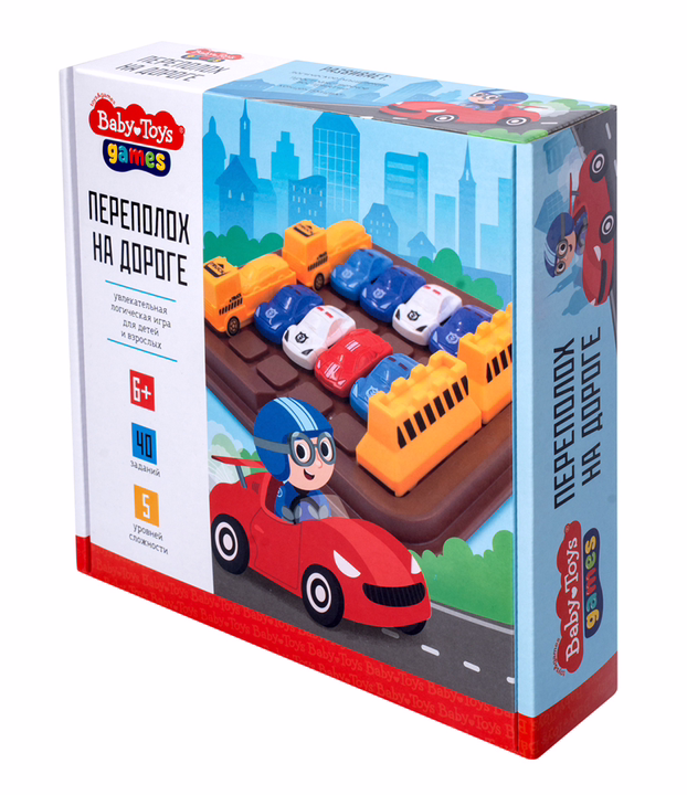 Выберите задание и разместите машинки и дорожные заграждения на игровом поле, как показано в инструкции. Перемещайте машинки на игровом поле, учитывая их особенности: одни могут двигаться только вверх и вниз, другие – влево и вправо. Продумывайте каждый шаг, комбинируйте движения и создайте оптимальный путь для красной машинки.