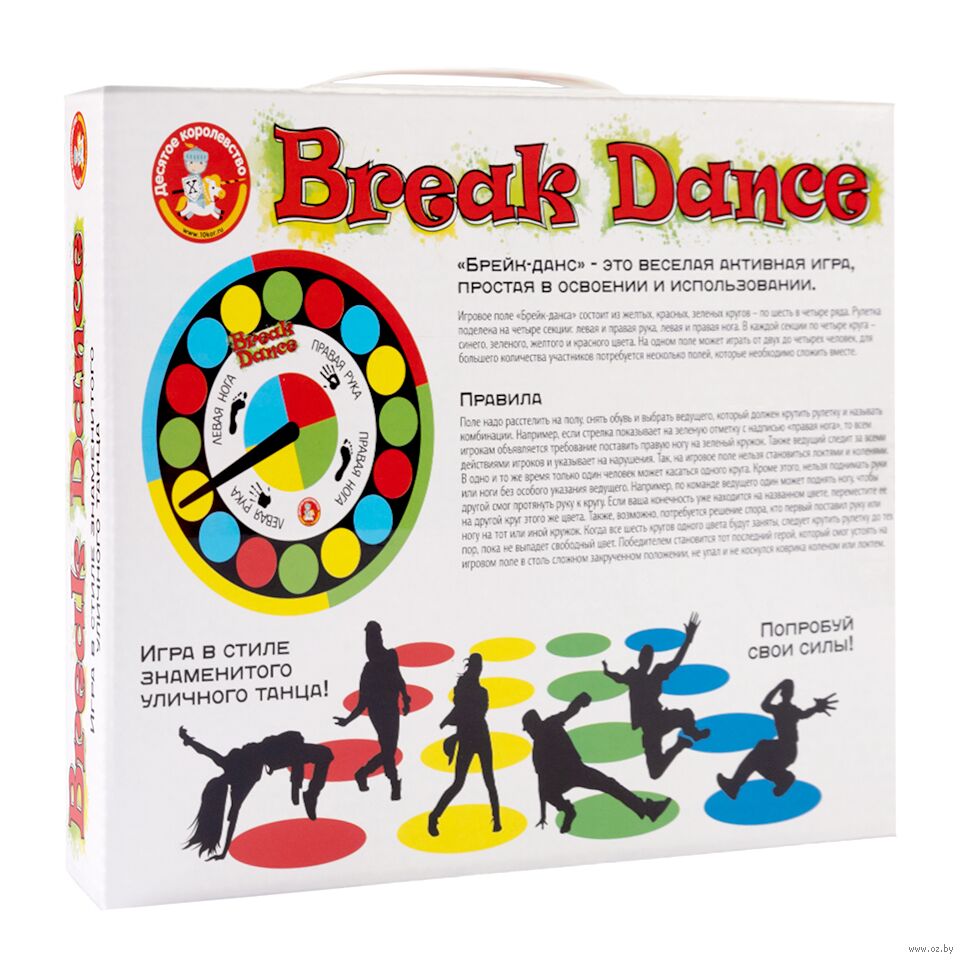 Подарите вашему ребёнку весёлую и динамичную игру "Брейк-данс", благодаря которой он освоит некоторые движения и стойки известного уличного танца! Танцуйте и развлекайтесь всей семьёй!
