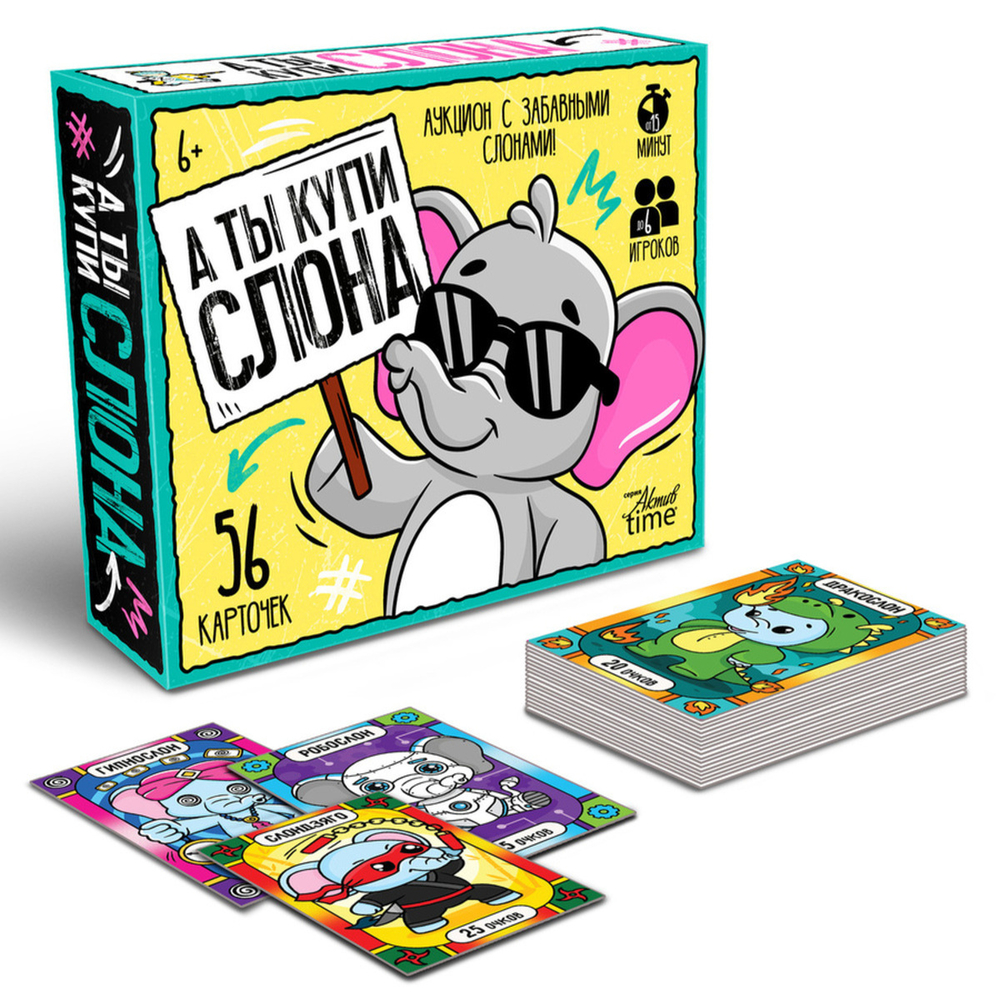 Настольная игра "А ты купи Слона" – это не просто игра, это аукционное безумие, где каждый стремится первым собрать коллекцию из восьми очаровательных слонов одного вида и достичь заветных 250 очков. Готовьтесь к взрывным эмоциям, хитрым стратегиям и безудержному веселью!