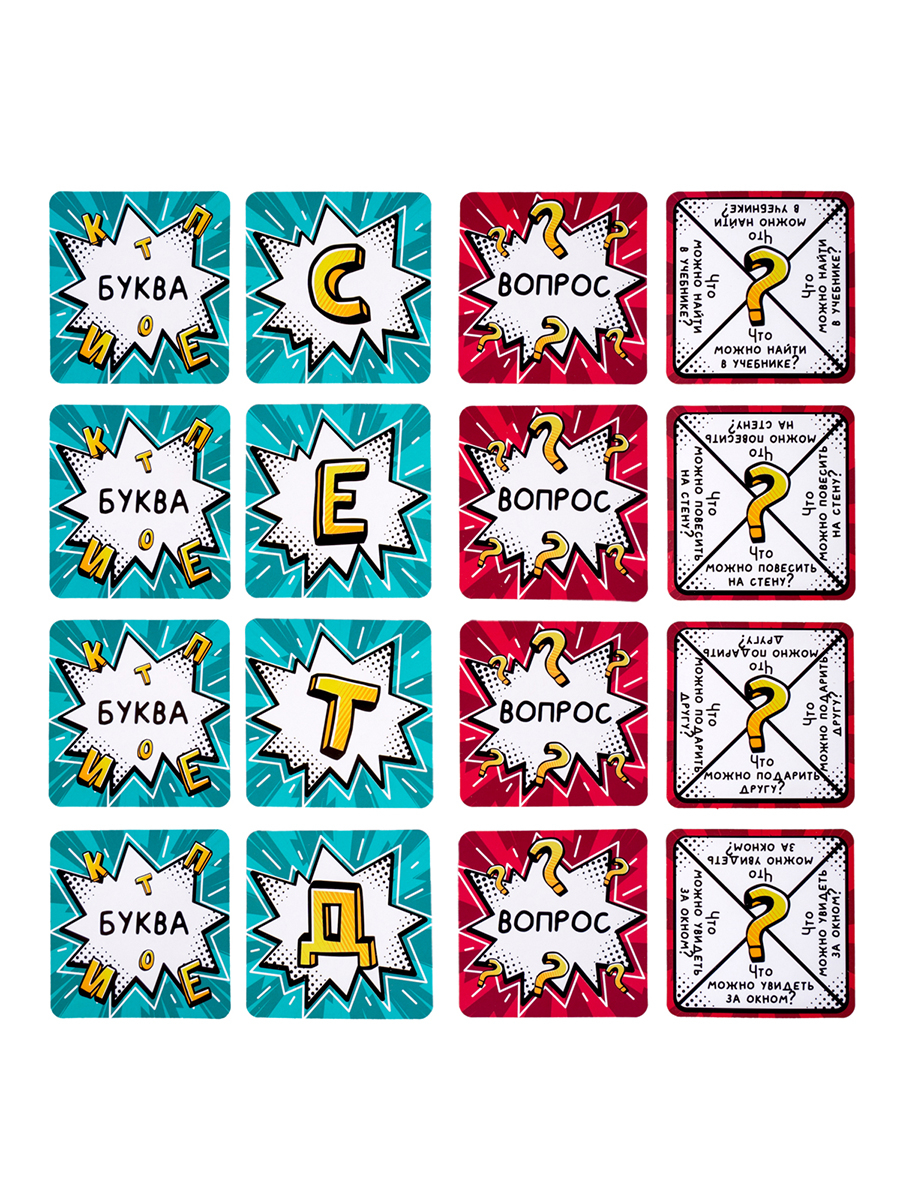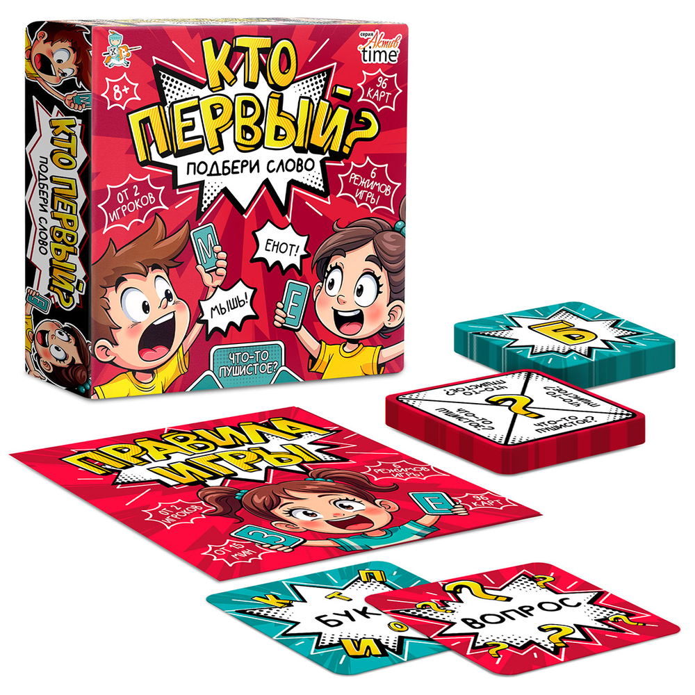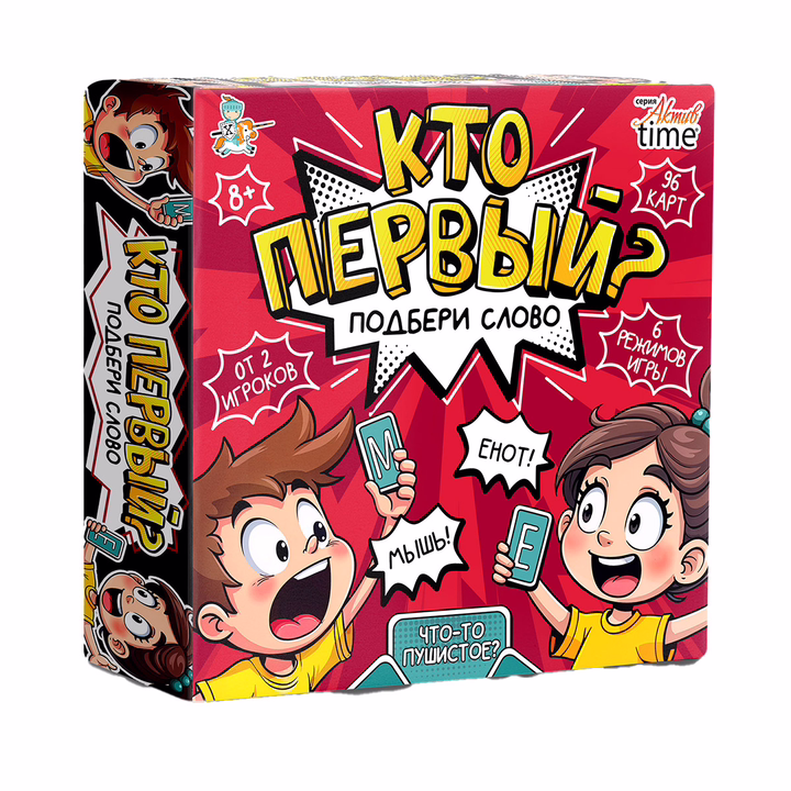 Настольная игра "Кто первый? Подбери слово" 96 карт Актив time – это взрывная смесь викторины и словесного азарта, где ваши знания сталкиваются со случайностью. Пора проверить вашу смекалку и словарный запас!