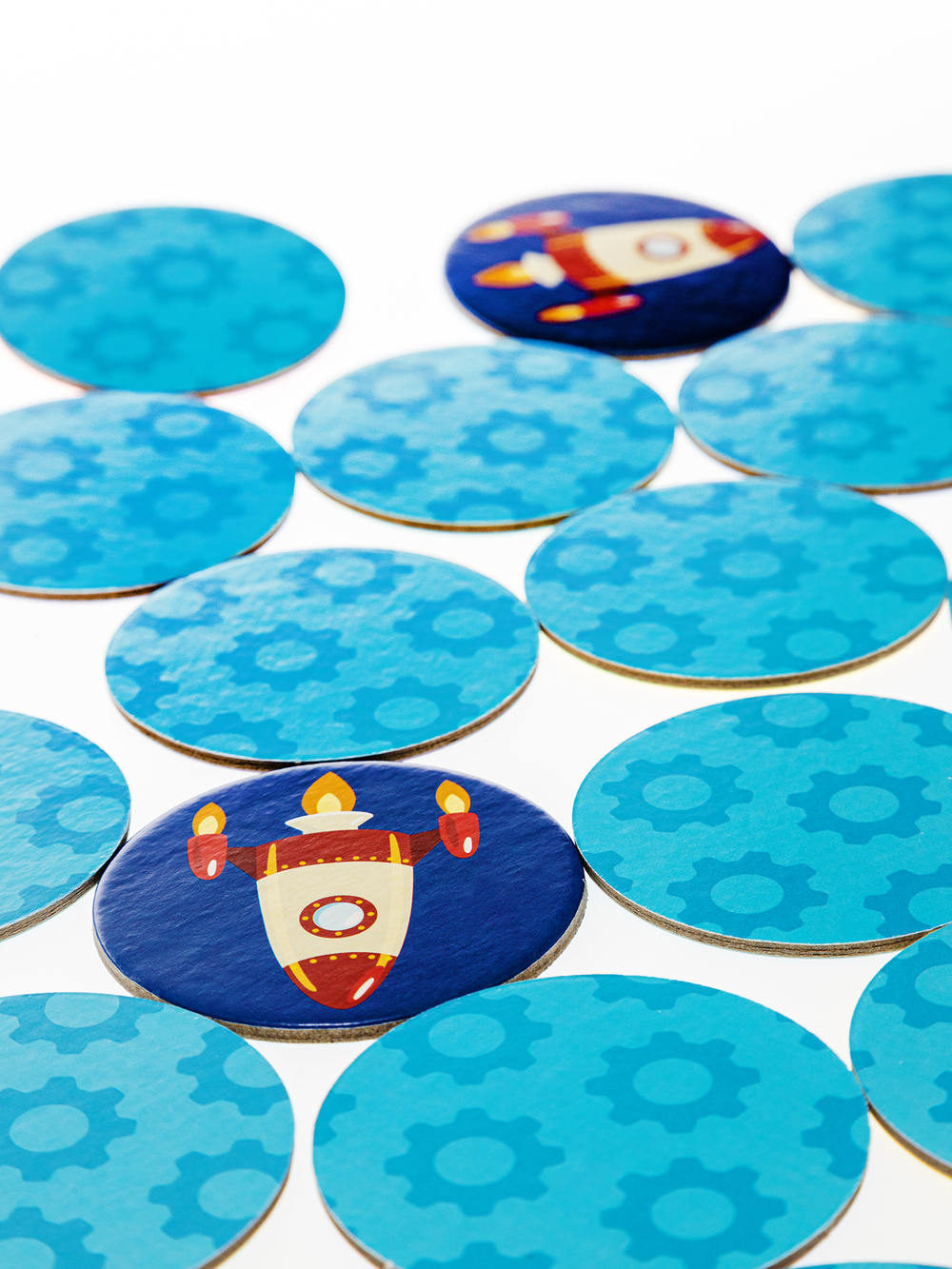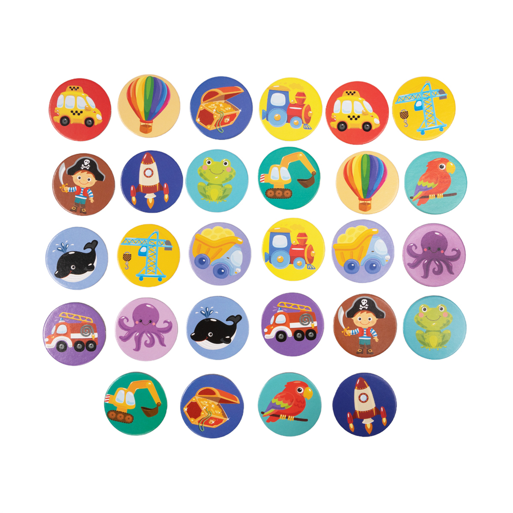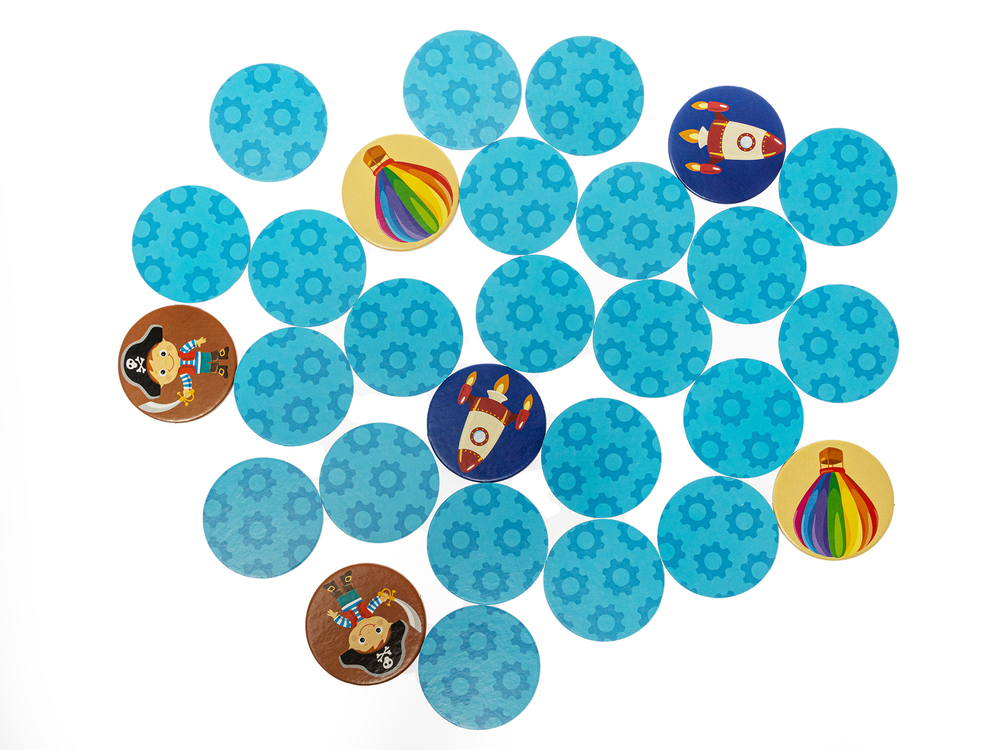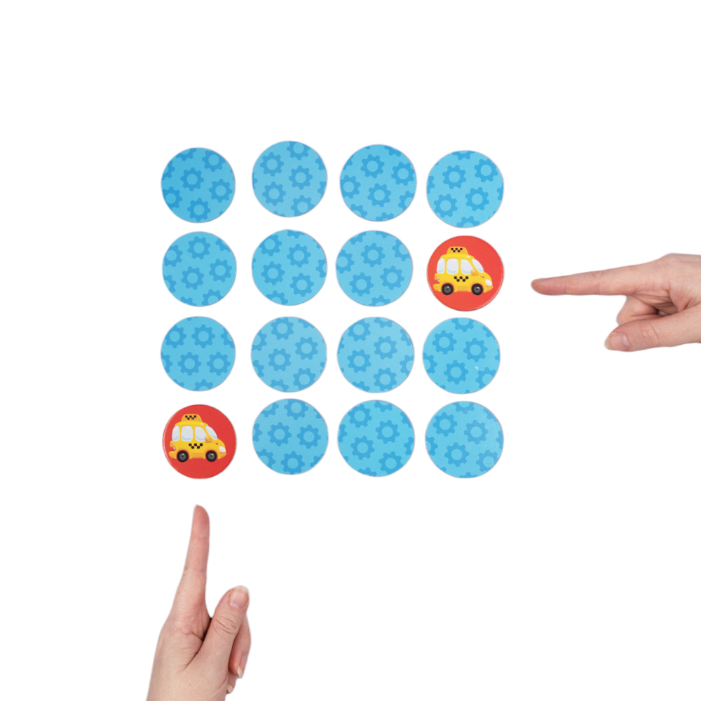 Перед началом игры тщательно перемешайте фишки и разложите их перед ребёнком картинками вниз по схеме 4х7. Цель игры – найти все пары картинок. Возможны два варианта игры – в одиночку или вдвоём.