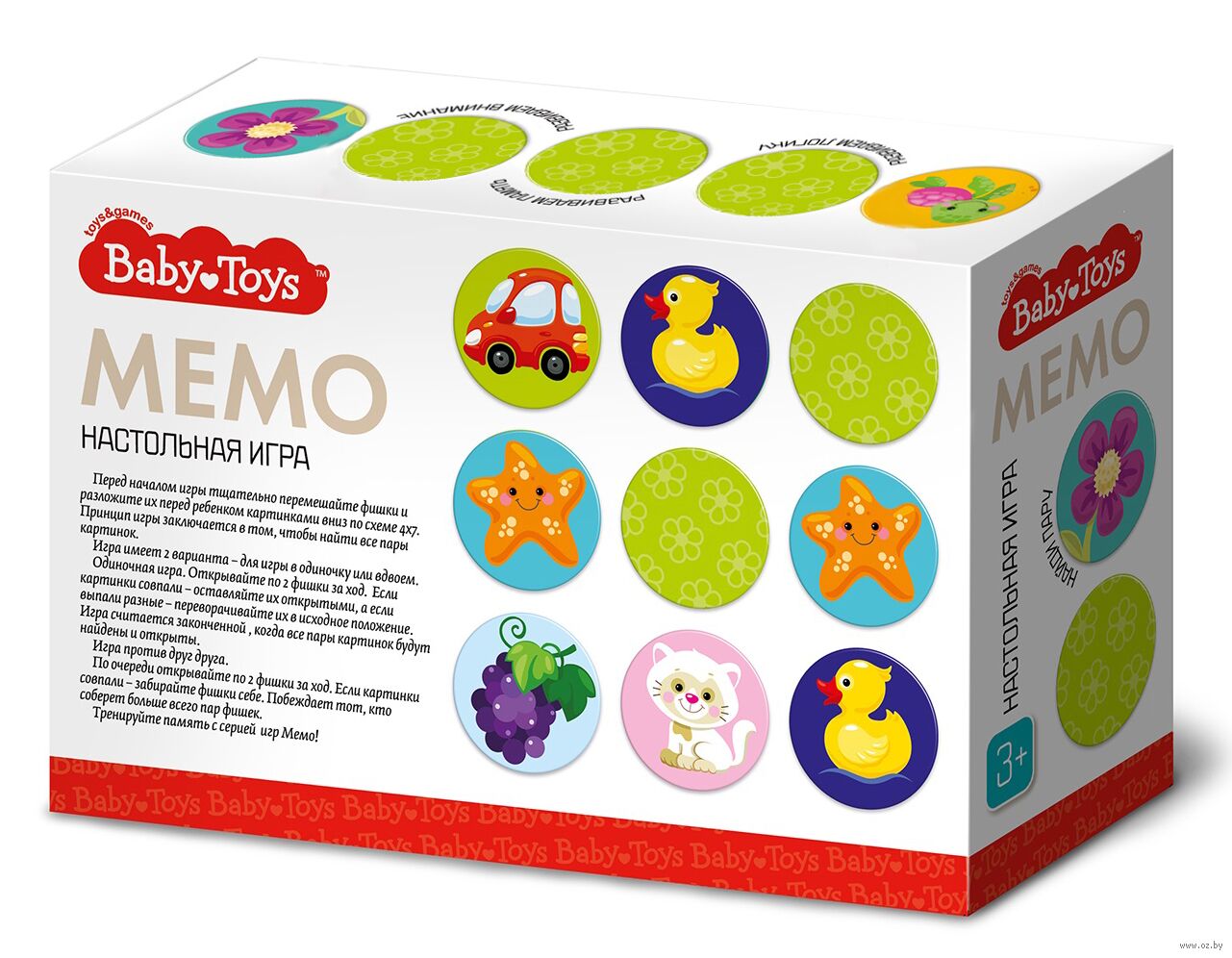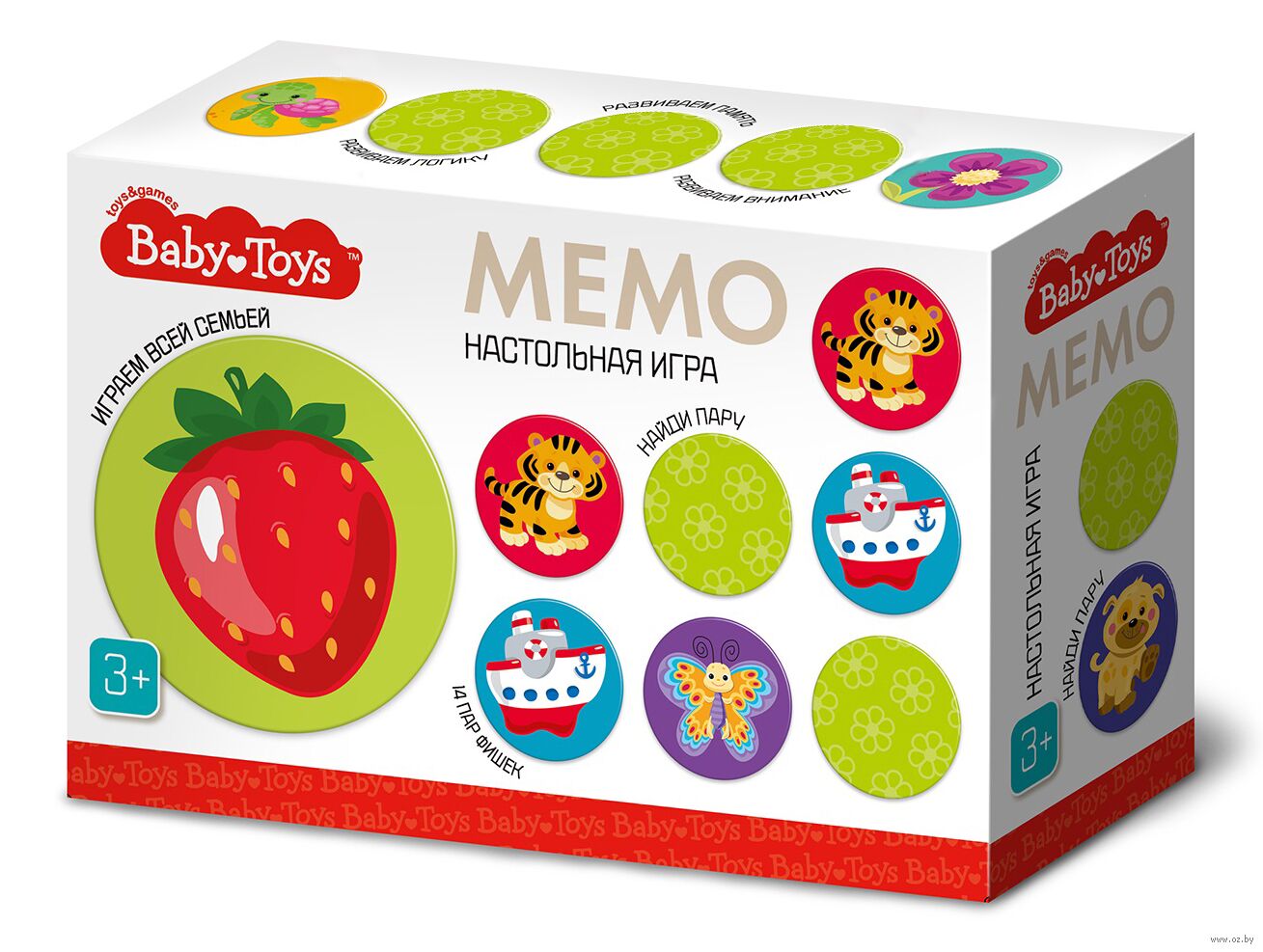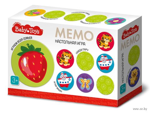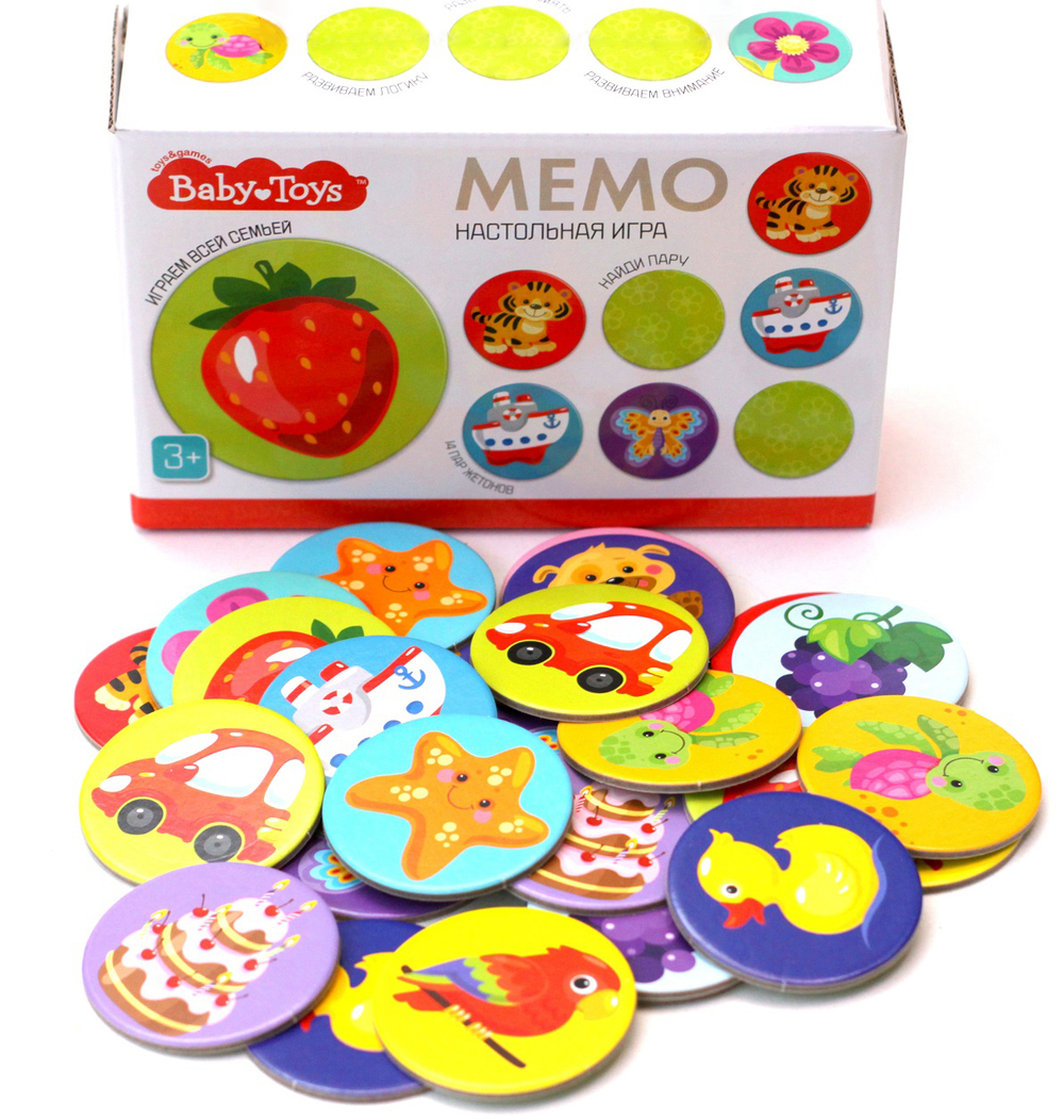 Тренируйте память с игрой Мемо для самых маленьких от BabyToys! Играйте всей семьёй – ищите пары одинаковых картинок среди 28 картонных фишек.