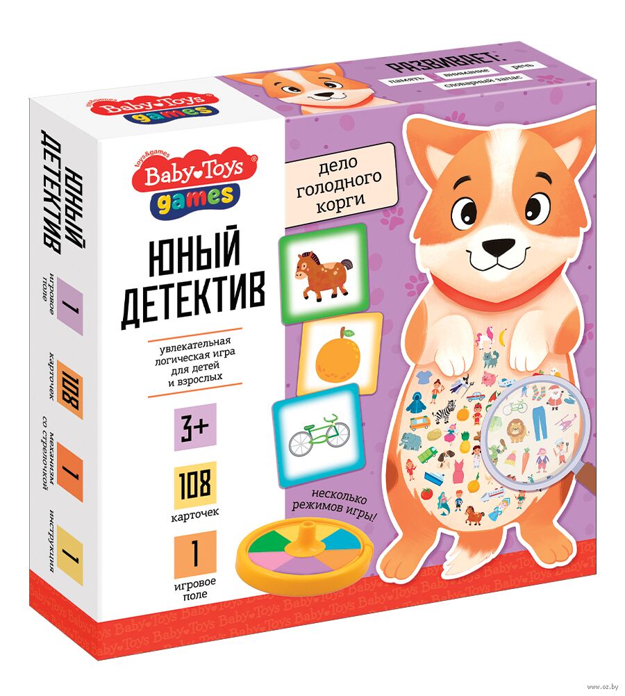 Настольная игра "Юный детектив". Дело голодного корги – эта игра великолепно тренирует внимание и наблюдательность, речевые навыки и логическое мышление, а память получает отличную нагрузку в режиме поиска.