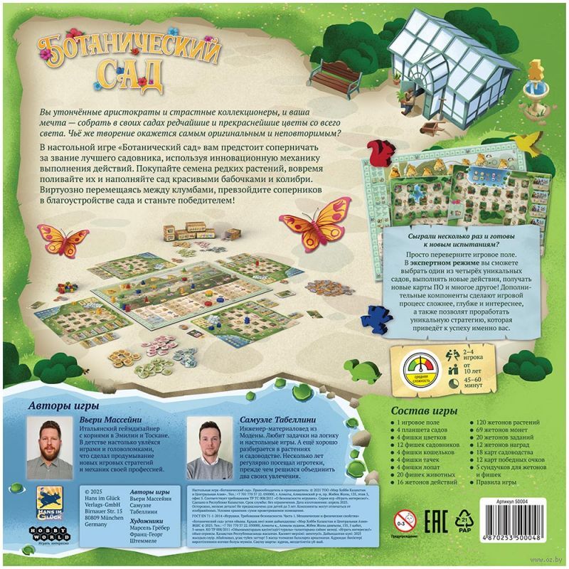 В настольной игре "Ботанический сад" вам предстоит соперничать за звание лучшего садовника, используя инновационную механику выполнения действий. Покупайте семена редких растений, вовремя поливайте их и наполняйте сад красивыми бабочками и колибри. Виртуозно перемещаясь между клумбами, превзойдите соперников в благоустройстве сада и станьте победителем!