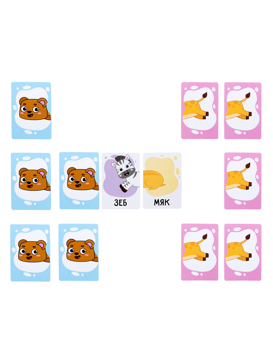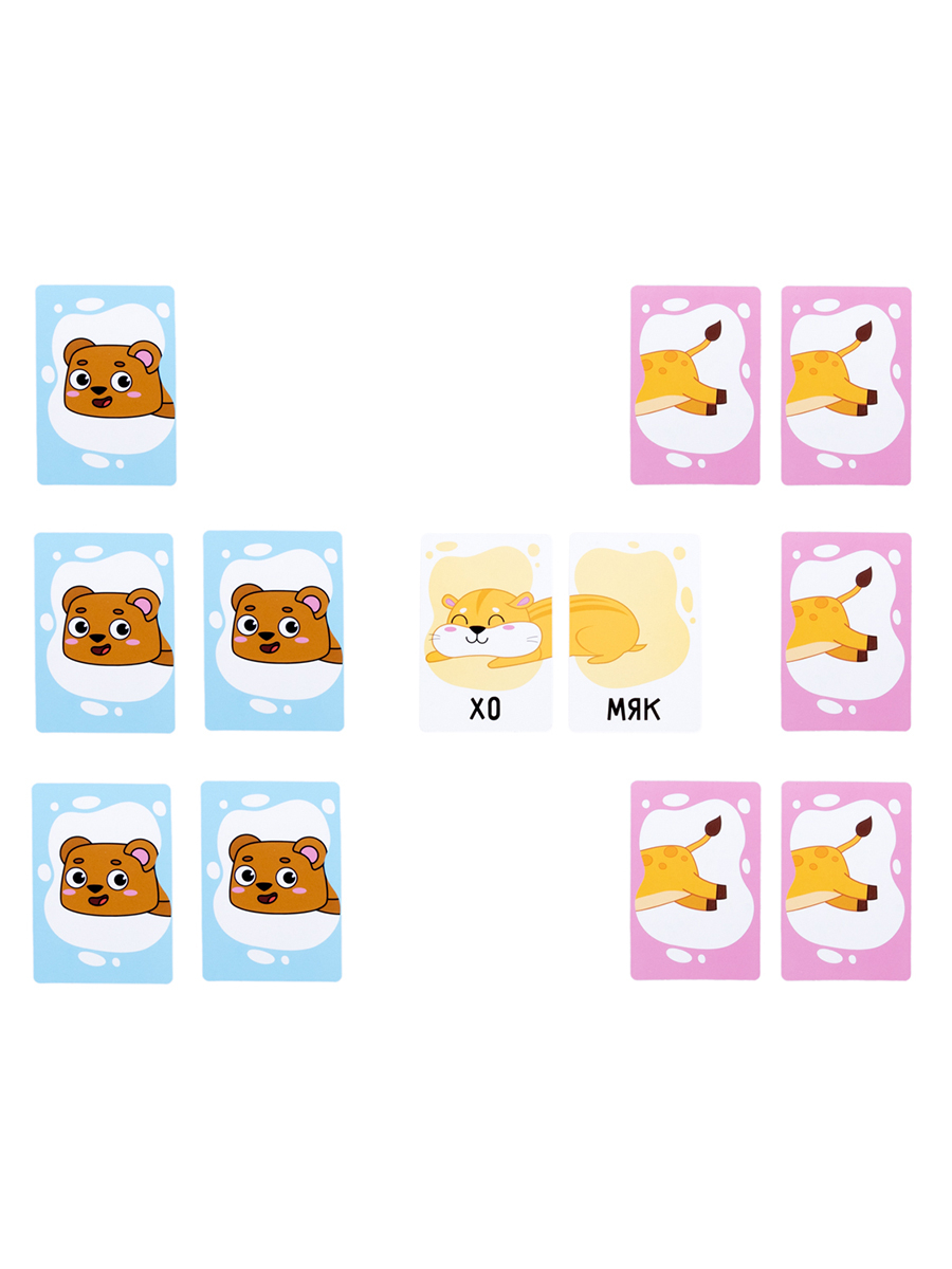 Настольная игра "Найди половинку" – это веселая развивающая игра для детей и всей семьи! Соединяйте мордочки и хвостики животных, читайте получившиеся слова и находите правильные пары.