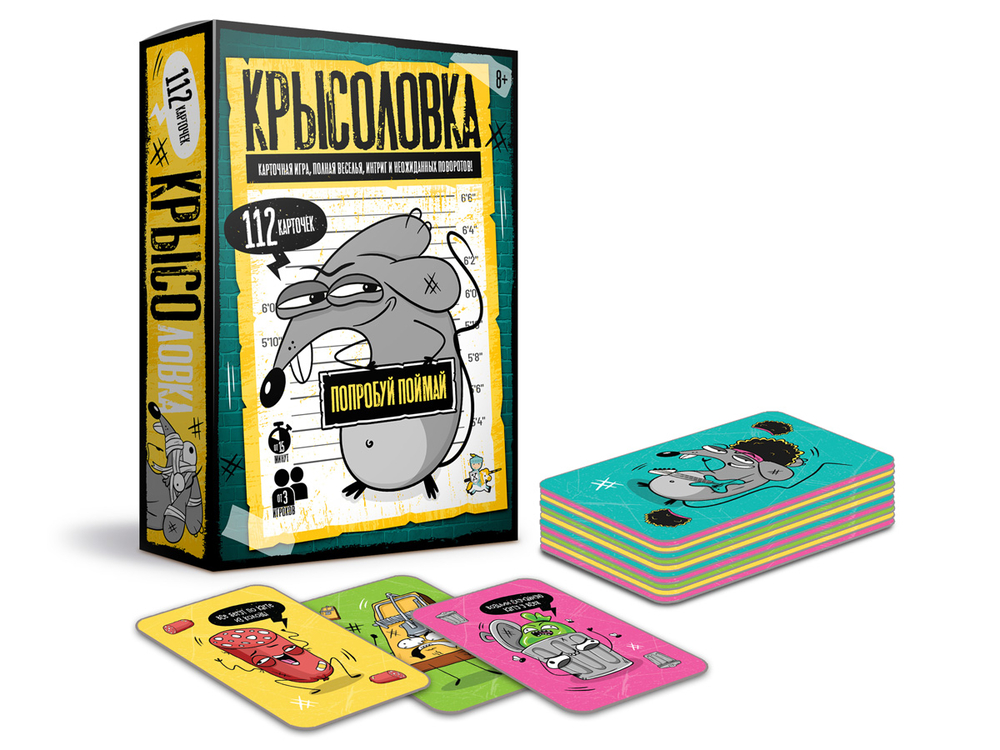 Ваша цель – избавиться от всех карт и поймать крысу. Игроки по очереди выкладывают карты, подбирая их по цвету, костюму или действию. Используйте спецприемы, меняйте направление, обменивайтесь картами и мешайте соперникам. Лови крысу, строй комбо, действуй быстро и коварно. Побеждает не просто ловец, а самый находчивый игрок в компании.