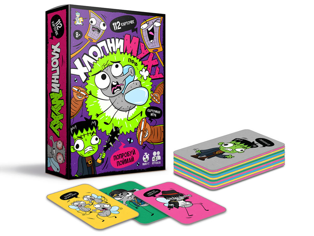 Настольная игра "Хлопни Муху" – это взрывная карточная игра, полная азарта, скорости и стратегического мышления!