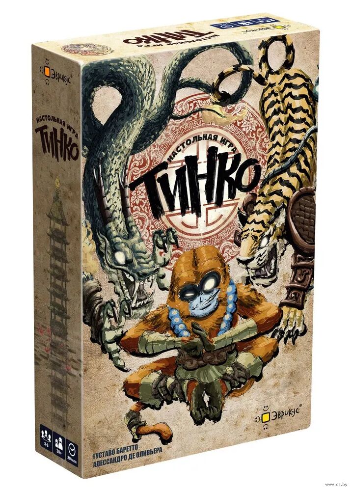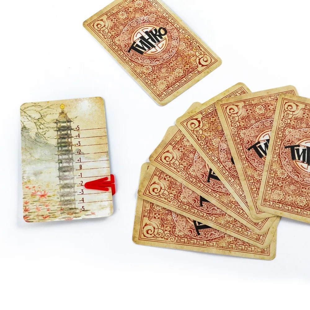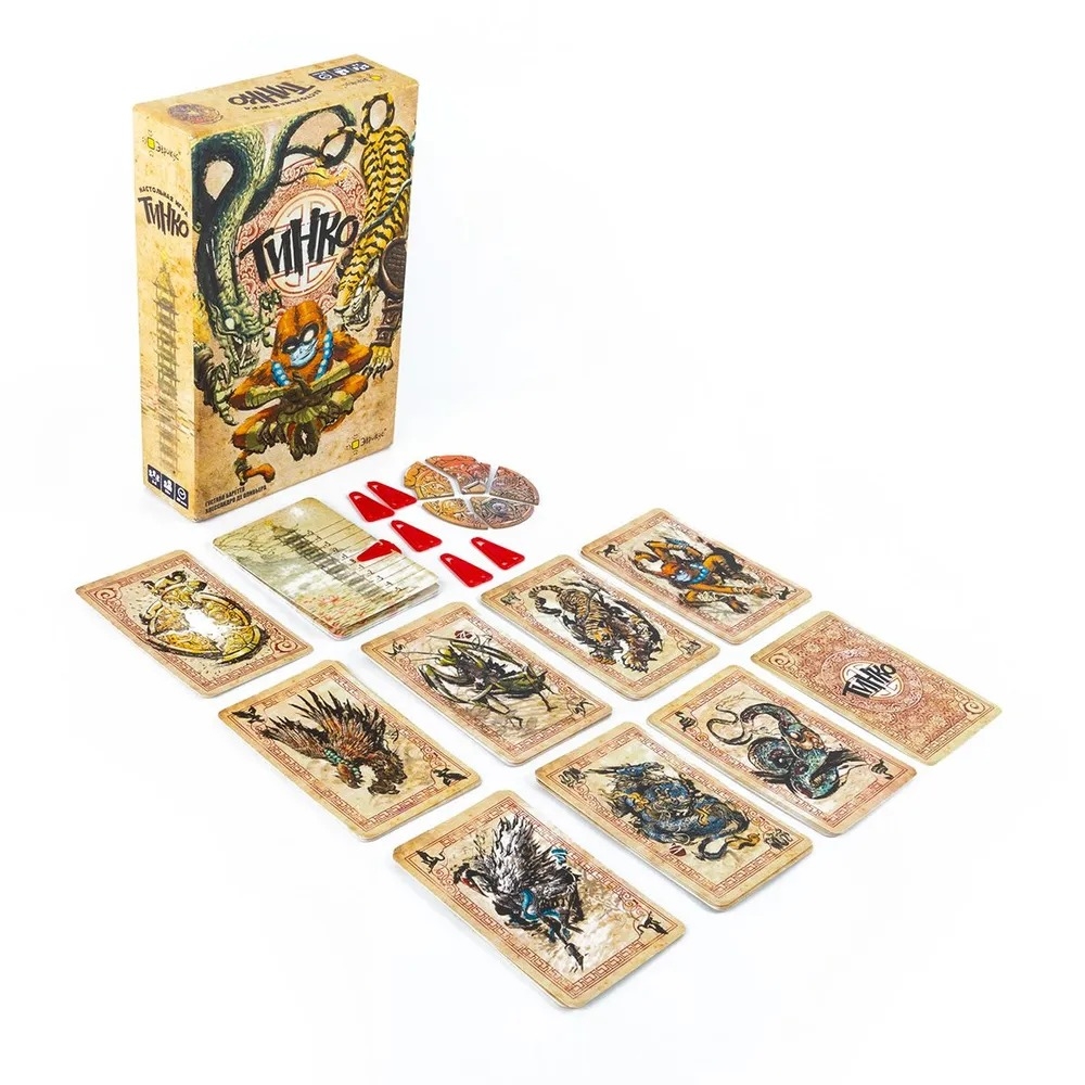 "Тинко" – это небольшая очень азартная и шумная карточная игра для компании от 3 до 6 человек. В ходе игры вы все одновременно будете обмениваться картами друг с другом и пытаться раньше соперников собрать набор из 5 карт с одинаковыми животными или осколками медальона одного цвета, в зависимости от уровня сложности, который вы выберите.