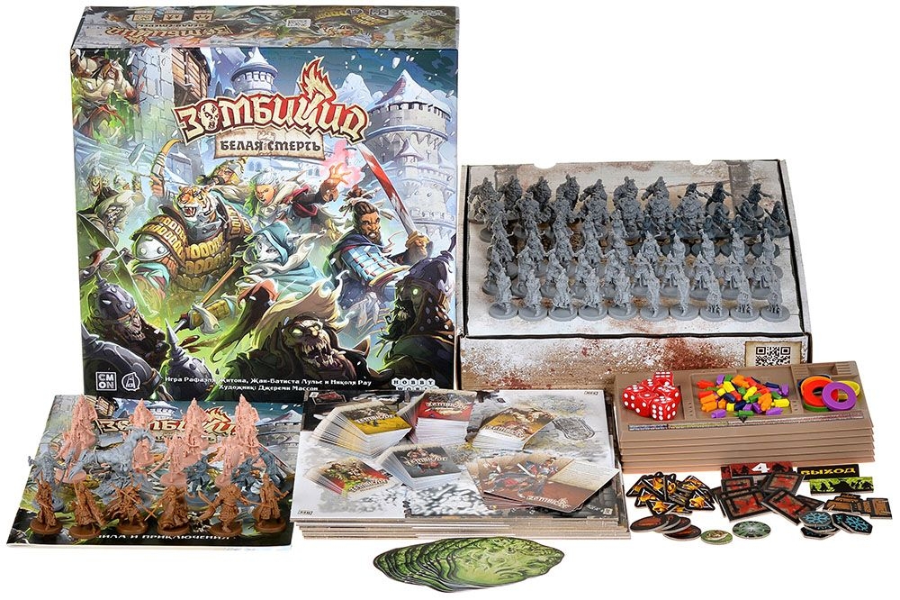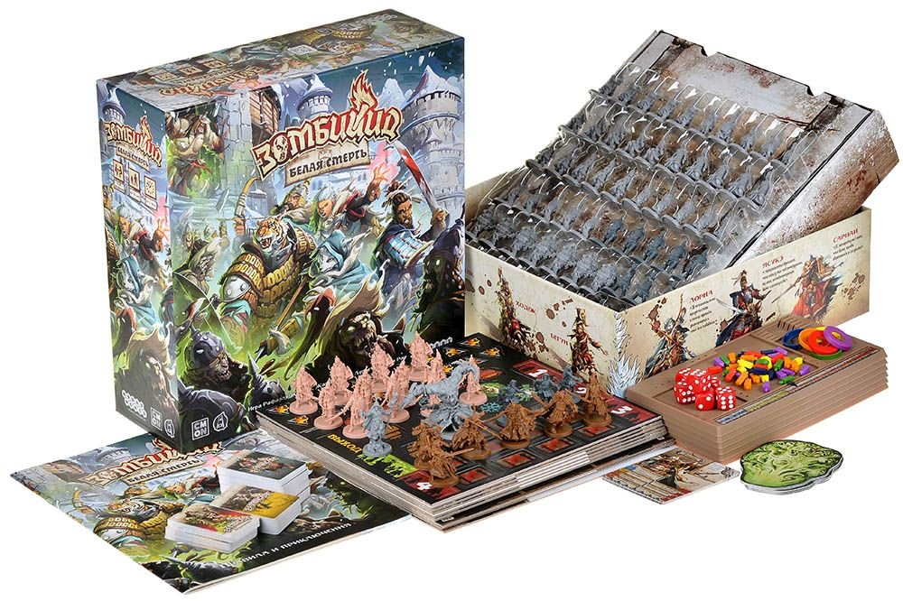 "Зомбицид: Белая смерть" – кооперативная настольная игра, в которой вы прокачиваете героев и сражаетесь с ордами зомби. Вам предстоит вести отряд отважных бойцов, искать для них снаряжение и давать отпор ожившим мертвецам на улицах холодного фэнтезийного города. Помните – победить в "Зомбициде" можно только сообща!