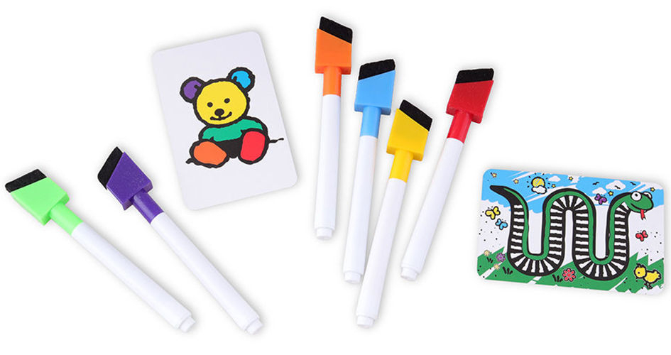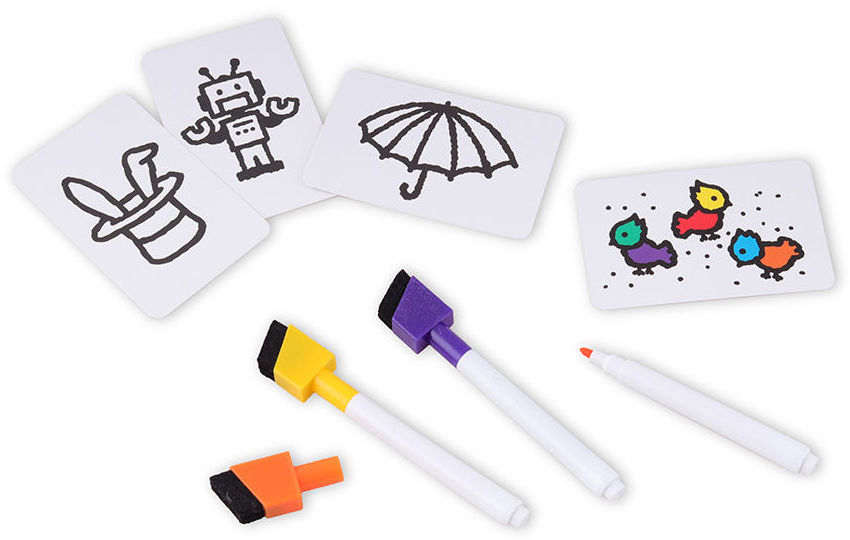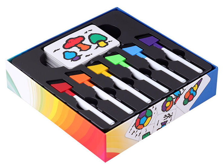 Вдохните жизнь в чёрно-белые картинки! Бросьте взгляд на цветную версию, переверните карту и постарайтесь раскрасить её точно так же... и быстрее всех! Чем лучше вы справитесь, тем больше очков получите, но не дайте коварным маркерам сбить вас с толку, ведь в каждом раунде колпачки на них меняются местами!
