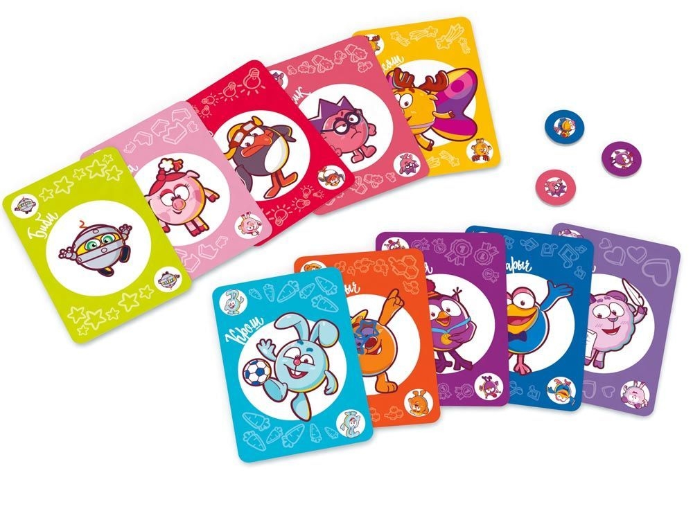 10 наборов по 4 карты в каждом (Крош, Нюша, Ёжик, Пин, Лосяш, Бараш, Копатыч, Совунья, Кар-Карыч, Биби)