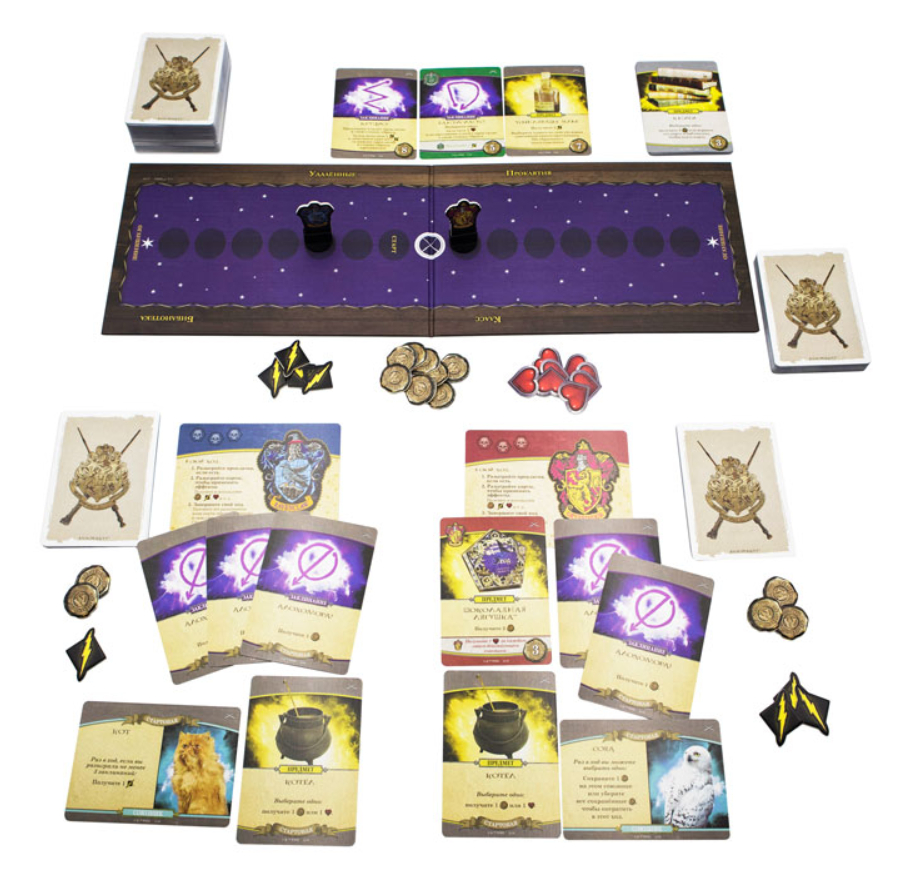 "Гарри Поттер. Битва за Хогвартс. Защита от тёмных искусств" – это соревновательная колодостроительная игра для двух игроков продолжительностью несколько раундов.