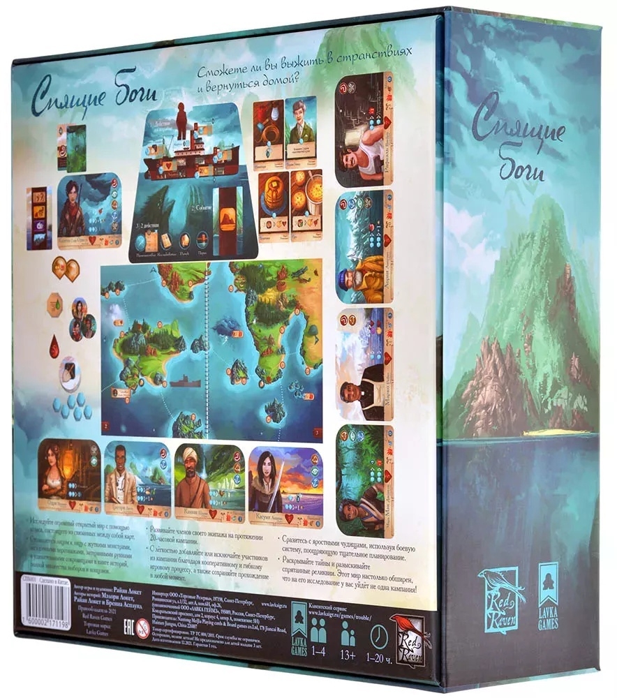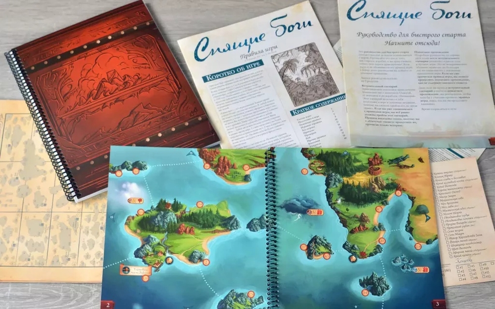 "Спящие боги" – это игра-кампания. Каждая партия длится столько, сколько вы захотите. В любой момент вы можете прерваться, отметить прогресс в бортовом журнале, а позже с лёгкостью продолжить игру в того же места. Вы можете проходить кампанию в одиночку или с друзьями. Также игра позволяет в любой момент исключать и добавлять участников. Ваша цель – найти как можно больше тотемов, сокрытых в разных частях мира. Словно читая книгу, вы будете погружаться в приключение на 1-2 часа за партию, пока не завершите его. Вы будете открывать новые земли, попадать в истории и преодолевать препятствия на своём пути.