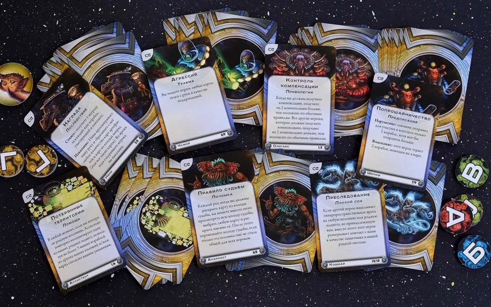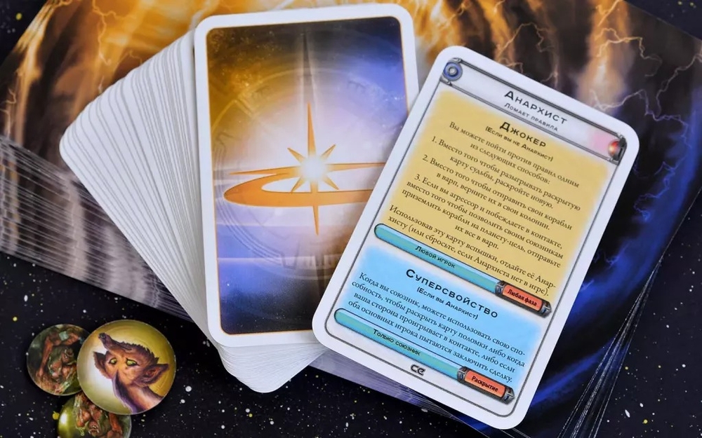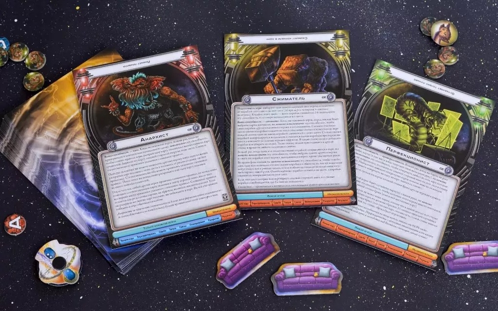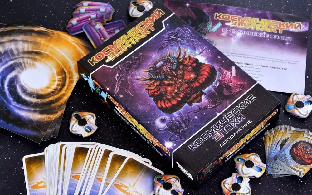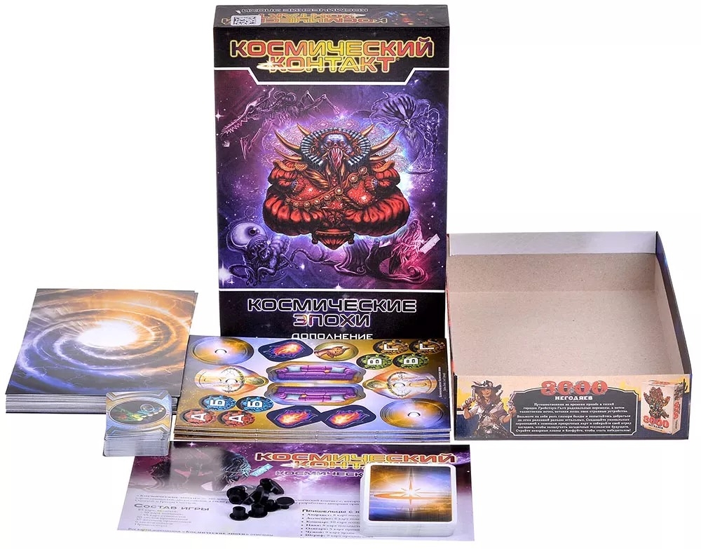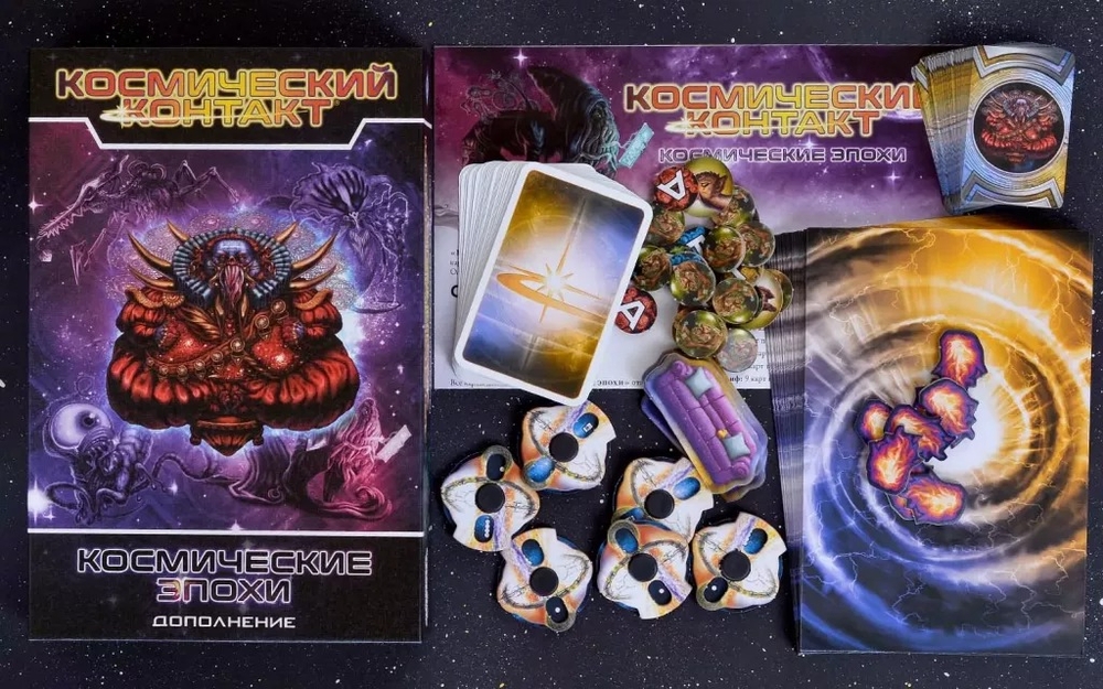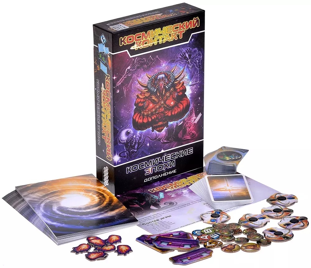 Ещё 30 инопланетных рас присоединяются к захвату галактики! Вас ждут встречи с загадочным Культом, вечным Кошмаром, восхитительными Сердобольцами и хаотичным Анархистом, который превращает всё вокруг в бушующее пламя. "Космические эпохи" привносят разнообразие в привычную игру благодаря дискам союзов, позволяющим до последнего сохранять интригу: кого и каким образом вы поддержите в гонке за космическое превосходство. А уникальные карты сущностей, которые доступны отдельным расам, добавят в каждую партию неповторимость.