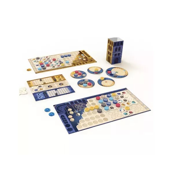 "Азул: Дуэль" – это абстрактная настольная игра, в которой вы выступите в роли мастеров, украшающих купол дворца Синтры по указу короля Мануэля I, желающего сделать Португалию как никогда красивой. На сей раз вас будет всего двое: вы настолько выделились во время работы над прошлыми проектами, что правитель не рискнул доверить столь ювелирную задачу кому-то другому. Как и всегда в "Азуле", вам предстоит поочерёдно выбирать цветные плитки и размещать их на своих планшетах, стремясь создать наиболее гармоничные и ценные узоры. Игра сочетает простые правила с глубоким стратегическим процессом, требуя от участников тщательного планирования и тактических решений. А благодаря эстетичному оформлению вам будет не только интересно играть, но и визуально приятно!