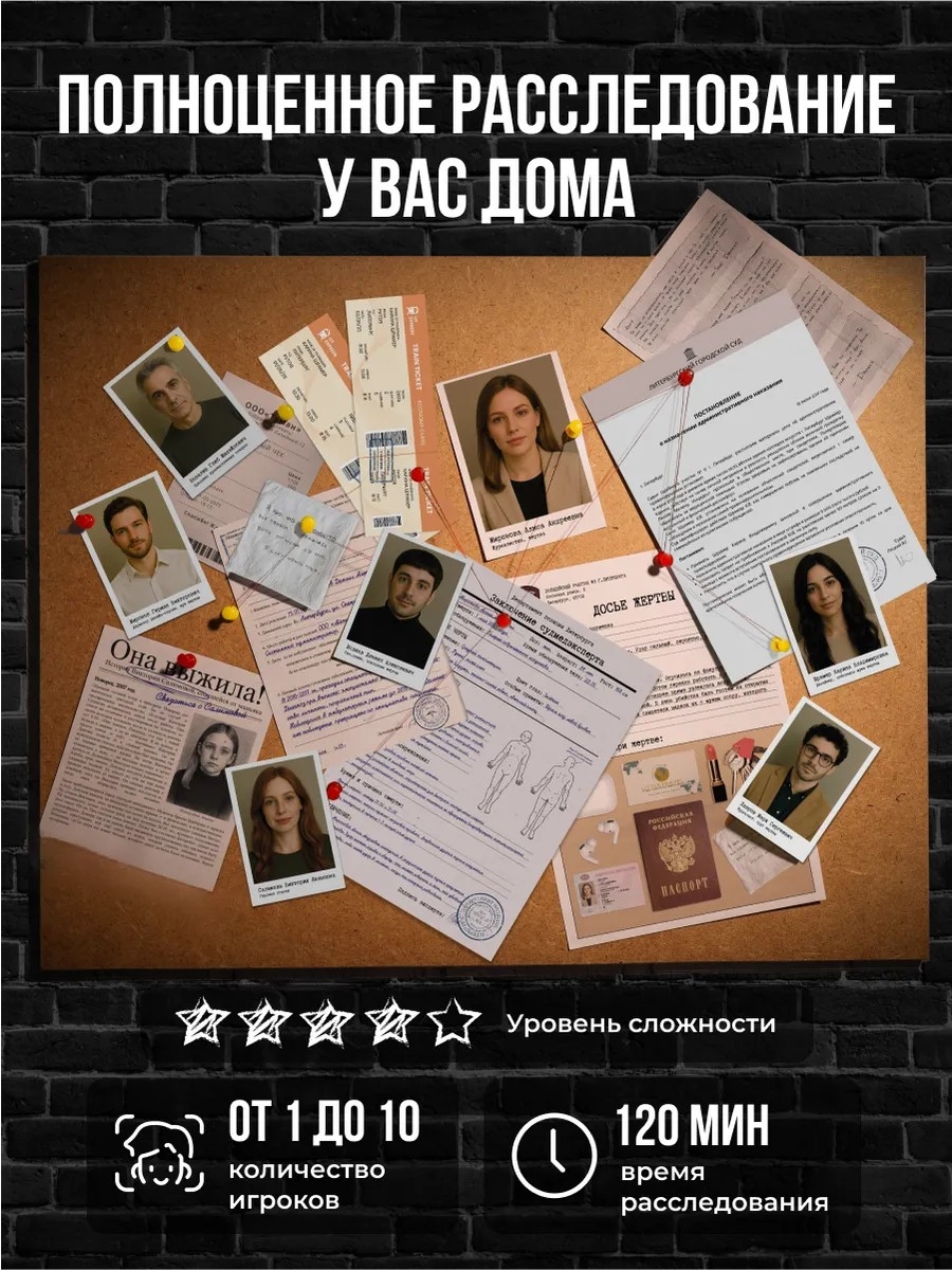Это не просто игра – это полноценное расследование преступления, где вы станете настоящими сыщиками. Вам предстоит заглянуть в личные переписки, прослушать записи допросов, взламывать почты, изучать соцсети, документы, улики. На один вечер вы станете настоящими детективами, чтобы поймать убийцу.