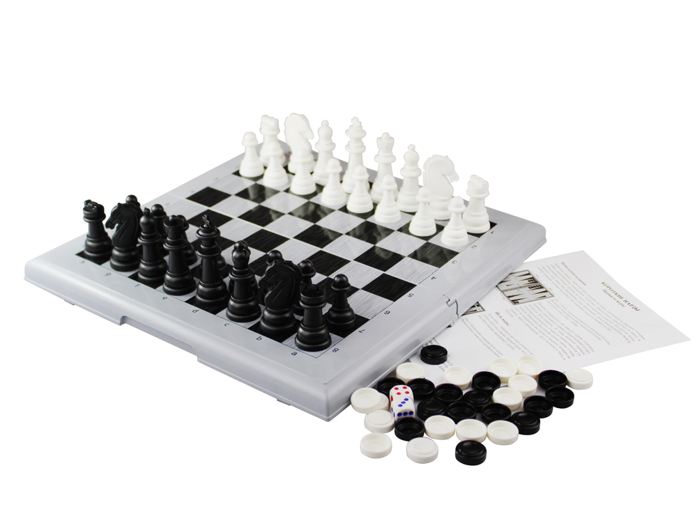 Не секрет, что играя в такие классические игры как шахматы, шашки или нарды, ребёнок развивает стратегическое мышление, обучается грамотно мыслить, достойно принимать победу и поражение, а также использовать смекалку и интуицию. Набор 3в1 в серой пластиковой коробке поможет в этом.